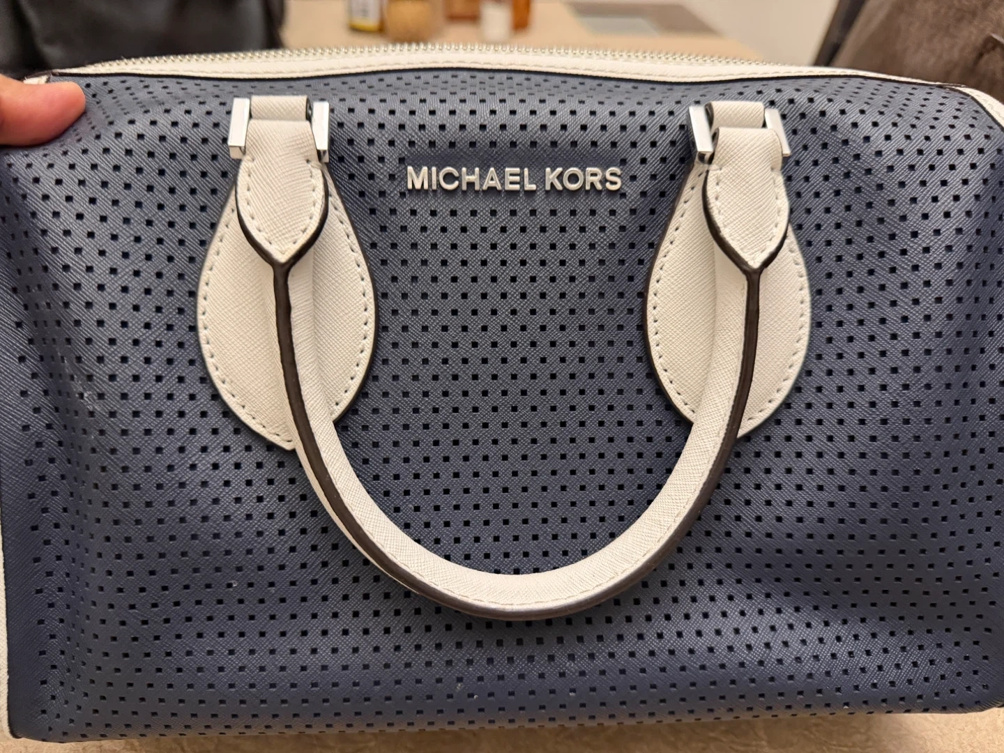 21Selling a Michael Kors satchel. It's in great condition and perfect for everyday use or a night out. The bag features a stylish design with a perforated pattern and comfortable handles.
