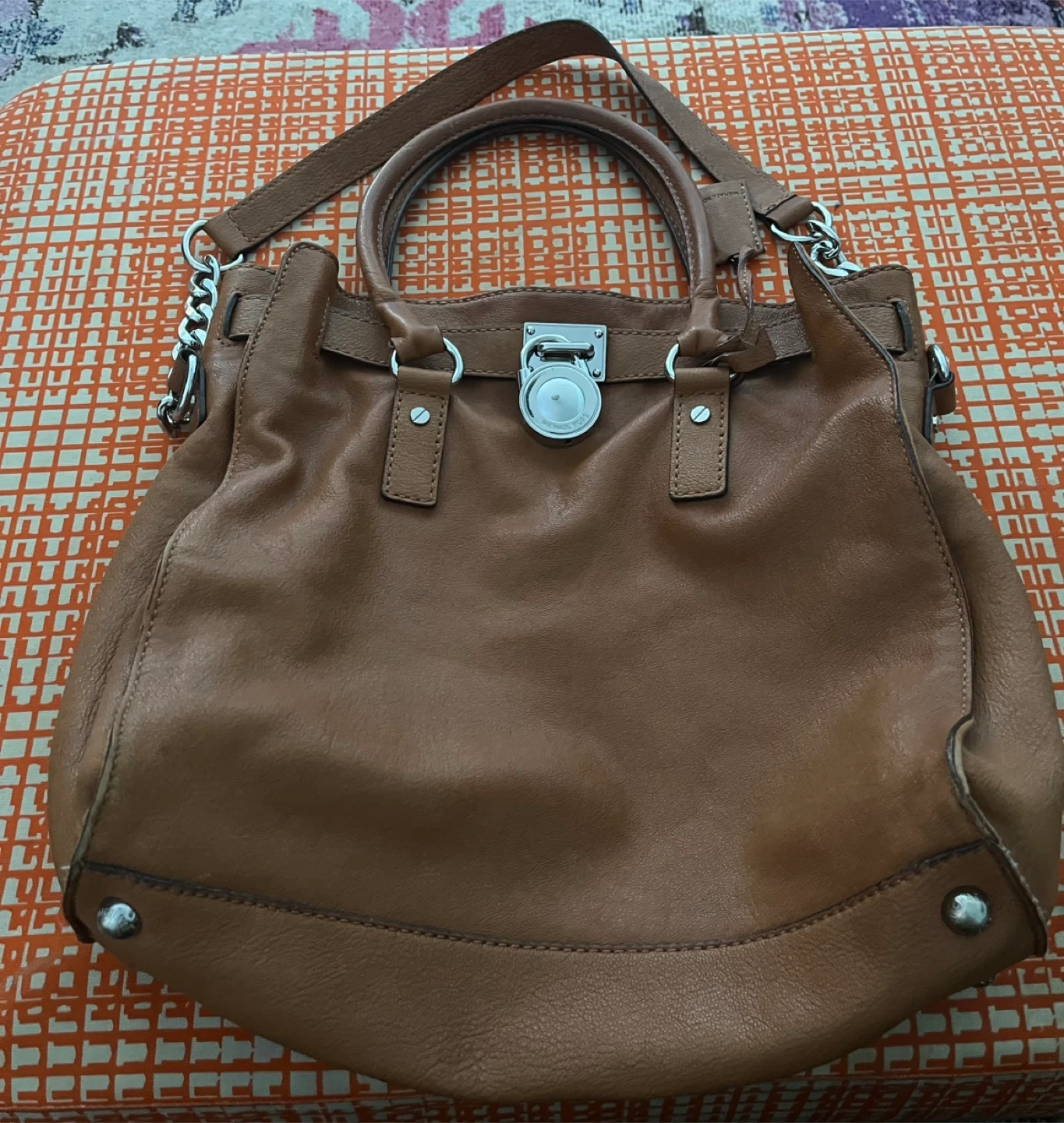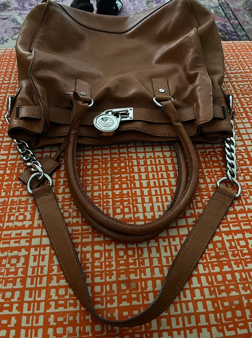 461Selling a gently used Michael Kors tote bag in brown! It features silver-tone hardware and a spacious interior. Perfect for everyday use!