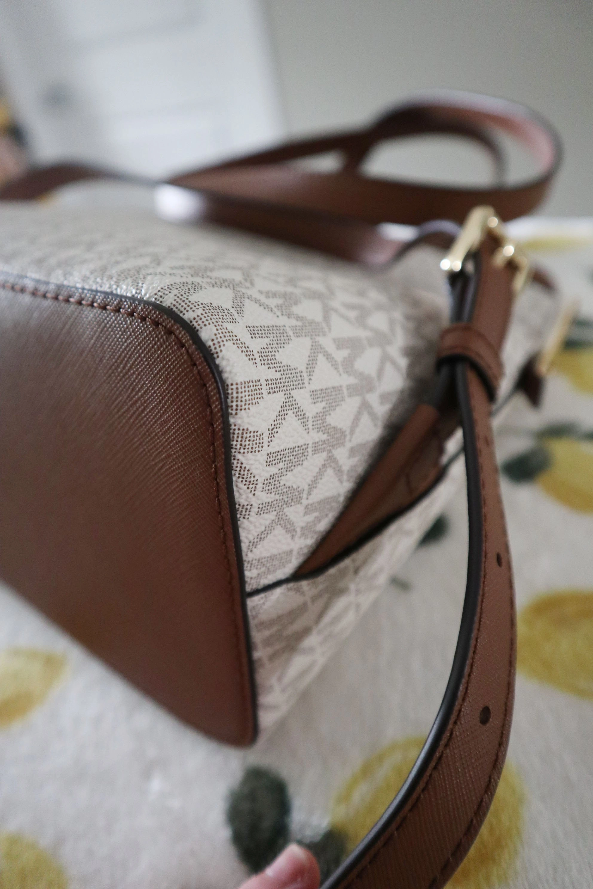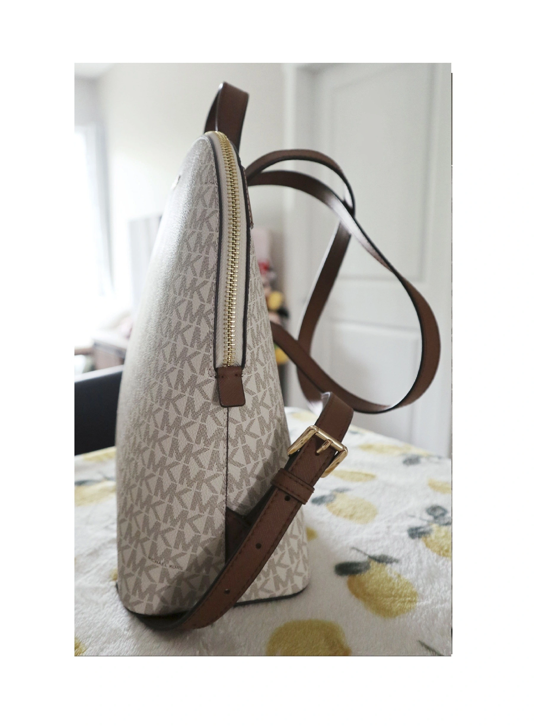 ❤️ Signature MK pattern all over the bag ❤️ Used only a couple of times ❤️ Excellent condition, hardware is still intact and golden ❤️ One zippered pocket inside ❤️ A card slot at the back ❤️ Neutral colour, very easy to match with any outfit ❤️ No dust bag ❤️ Carefully stored: was kept in a plastic pouch during storage ❤️ Dimensions: L10" x H12" x W4.5" 📍Meet up in Kingsway Mall or at Purolator store in 11220 104 Ave. NW Edmonton. Thanks for dropping by! 👍