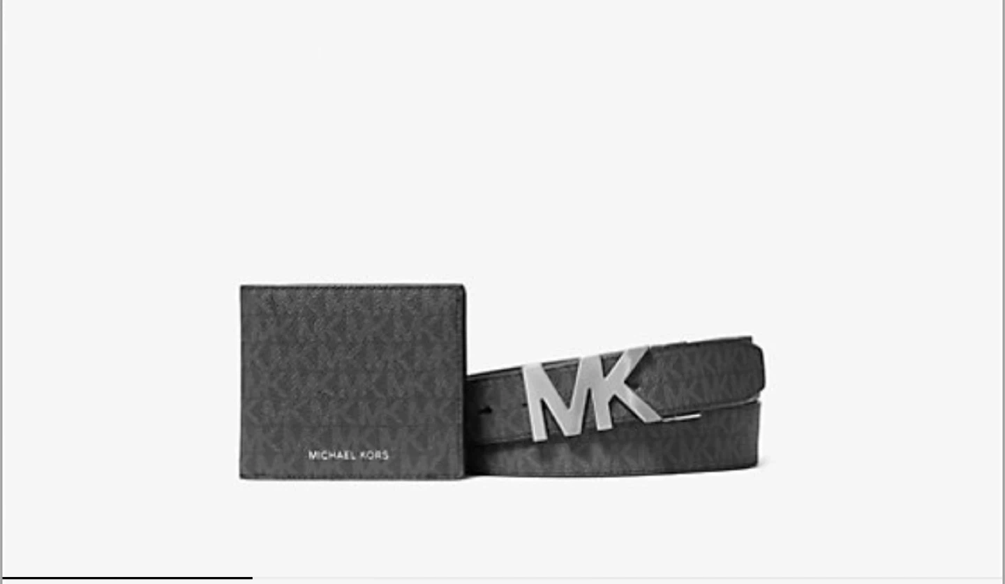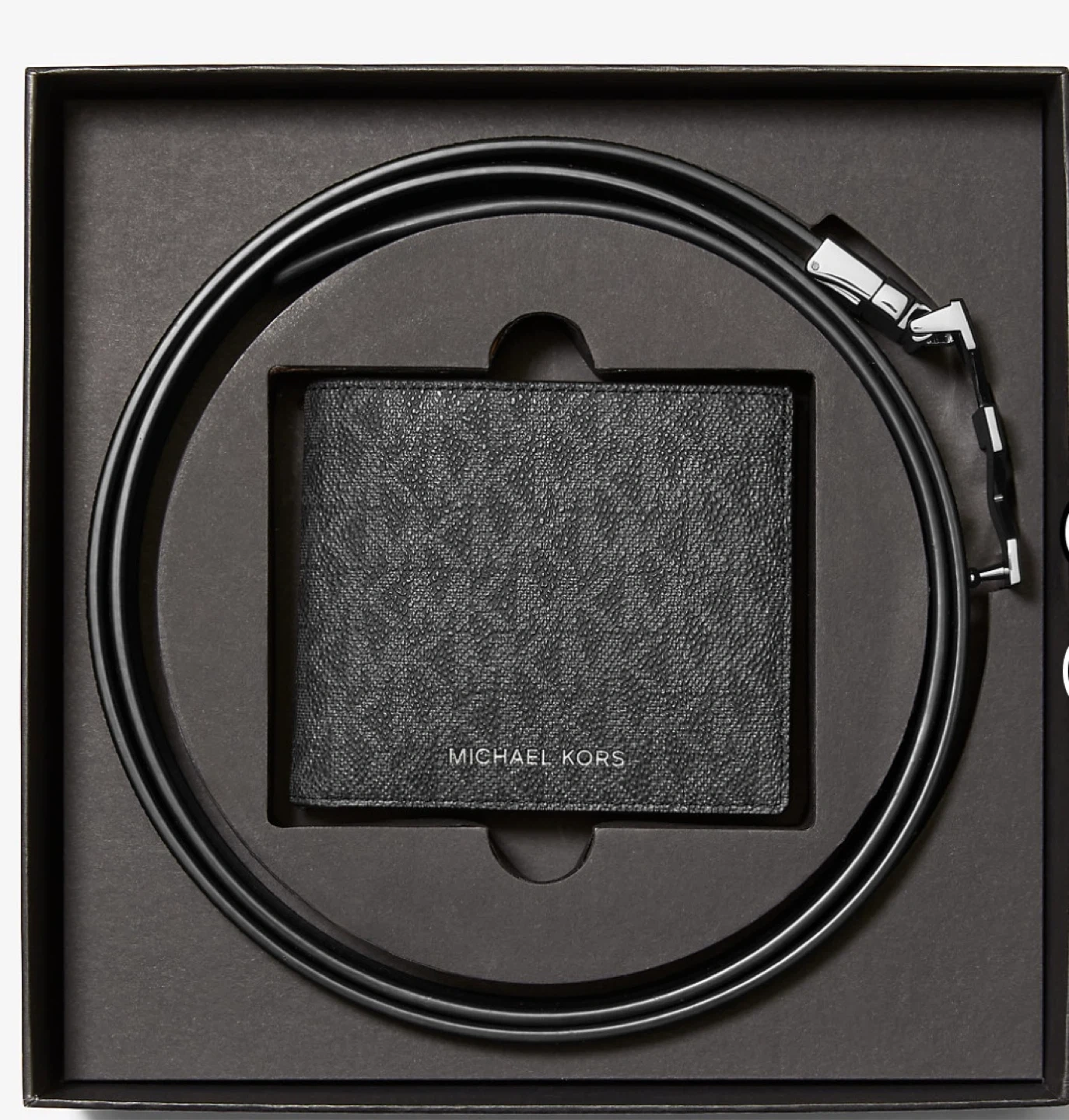 Selling a brand new Michael Kors wallet and belt set! It comes in the original box, making it a perfect gift. The set features a stylish design with the MK logo pattern. Great for everyday use or special occasions!