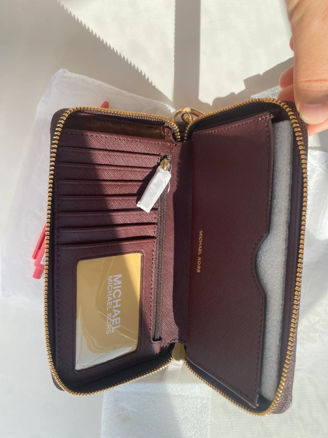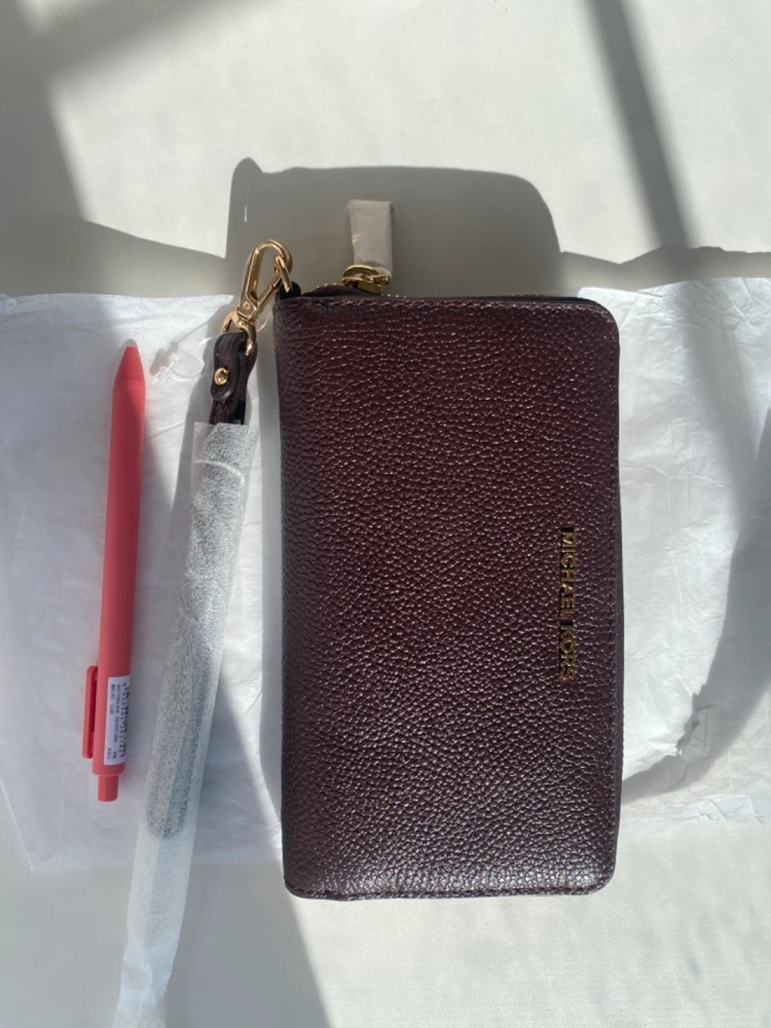 113Here's a brand new Michael Kors wallet in original packaging! It's a beautiful dark red/burgundy colour.
