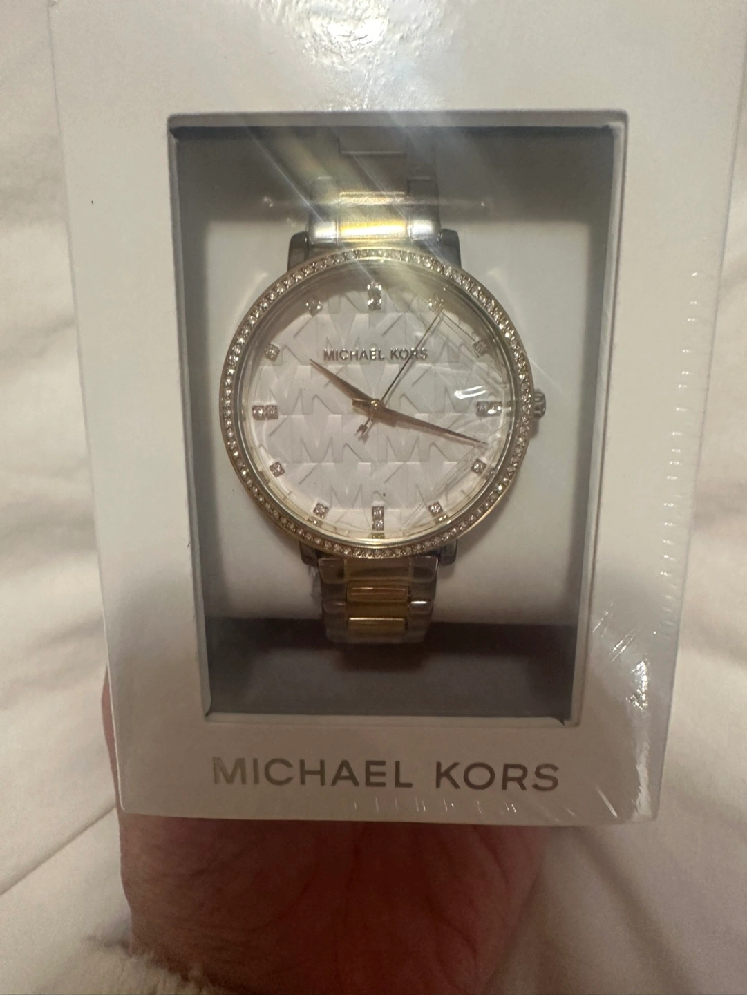 102Two-tone watch with a white face. Comes in original packaging. Originally $265.0 + Tax