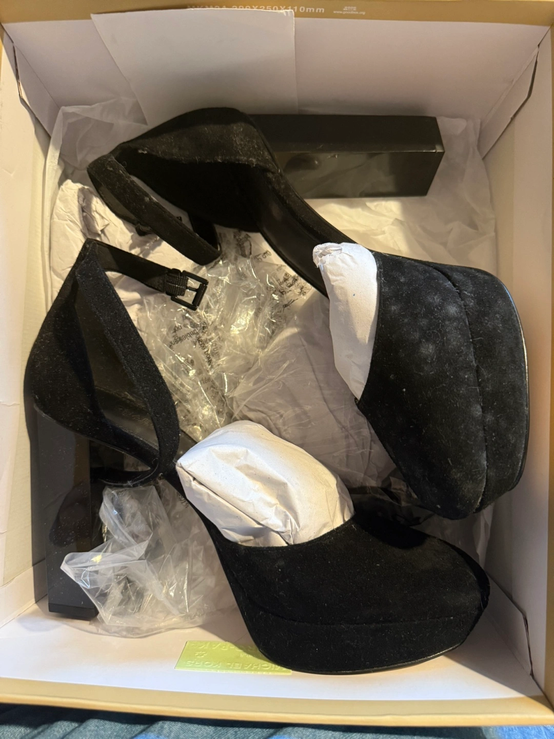 Selling a pair of Michael Michael Kors Petra Suede Platform Pumps in US size 7.5 - Colour: Black - Suede material - Includes the original box - Some Minor Dust Spots $25 Cash Only