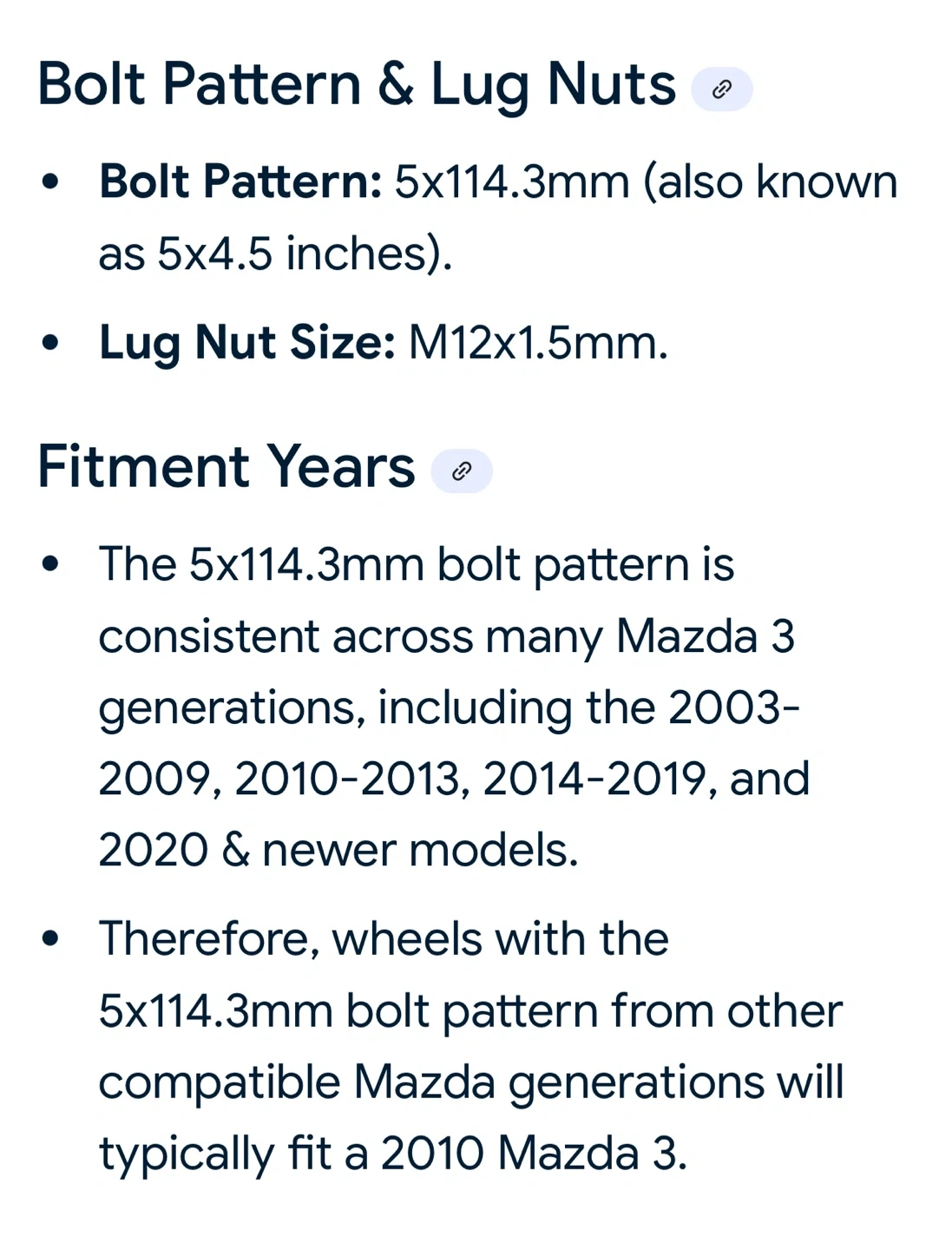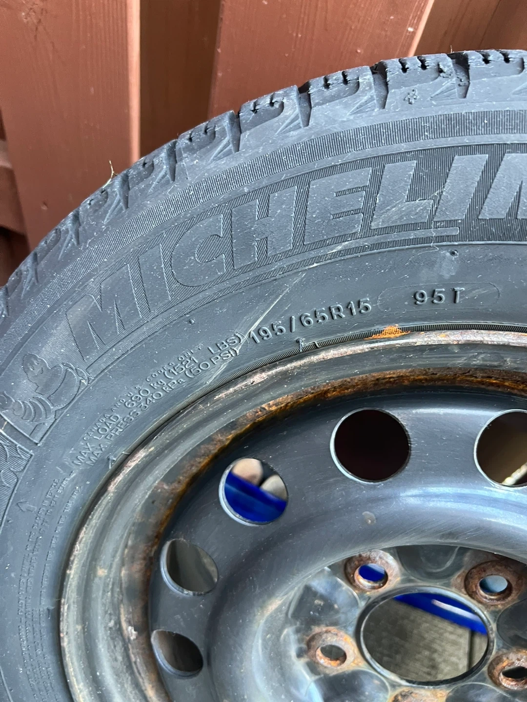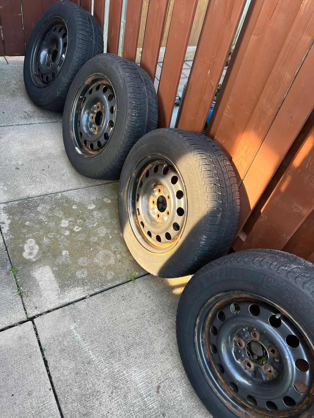 Selling a set of four rims and tires, size 195/65R15. They are in fair used condition and ready for a new vehicle! From a 2010 Mazda 3 . Fit many years of Mazda and other makes . Bolt pattern 5x 114.3mm .