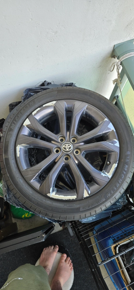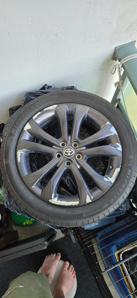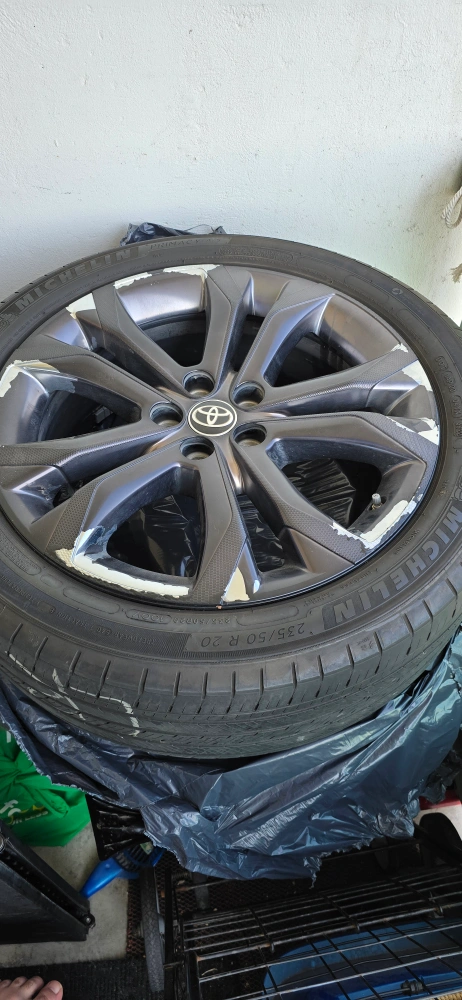 25Selling a Michelin tire with a Toyota rim. The tire size is 235/50 R20. It shows some wear and tear on the rim.