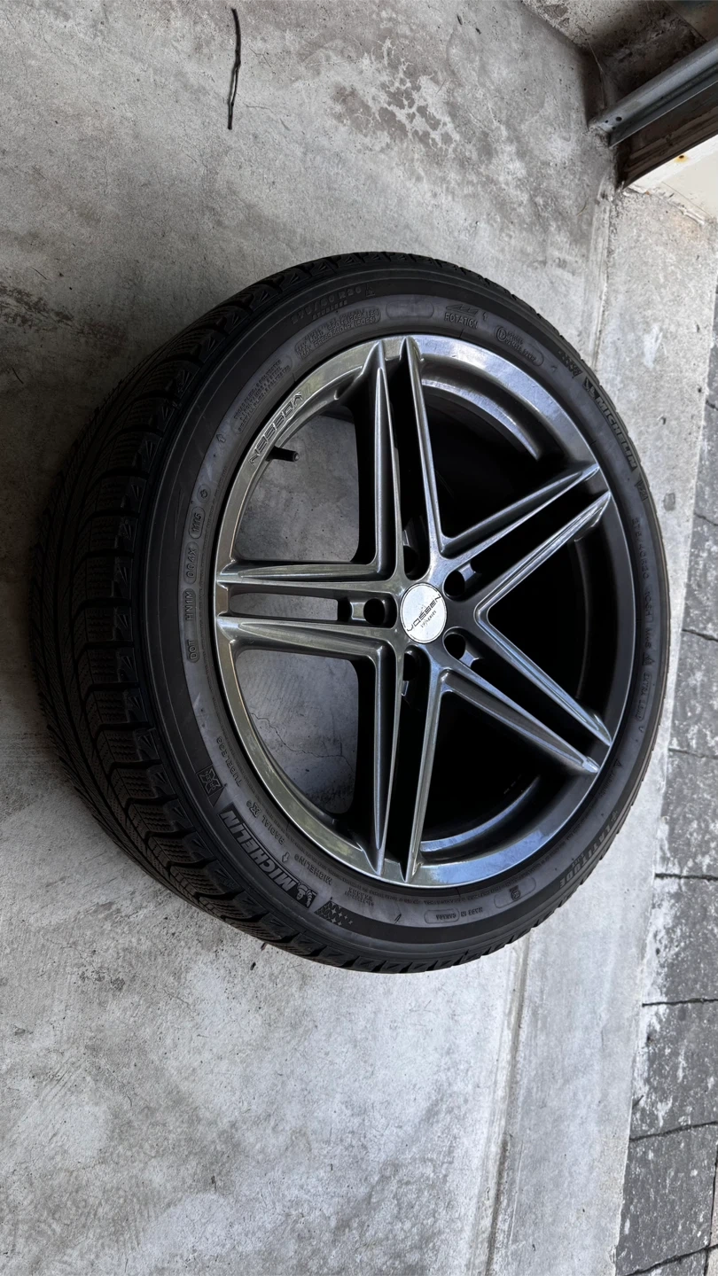 Selling a set of 4 Vossen VF Series wheels paired with Michelin winter tires. The tire size is 275/40R20. They are extra load tires, marked with M+S for mud and snow. The wheels are in good condition and ready to be mounted!