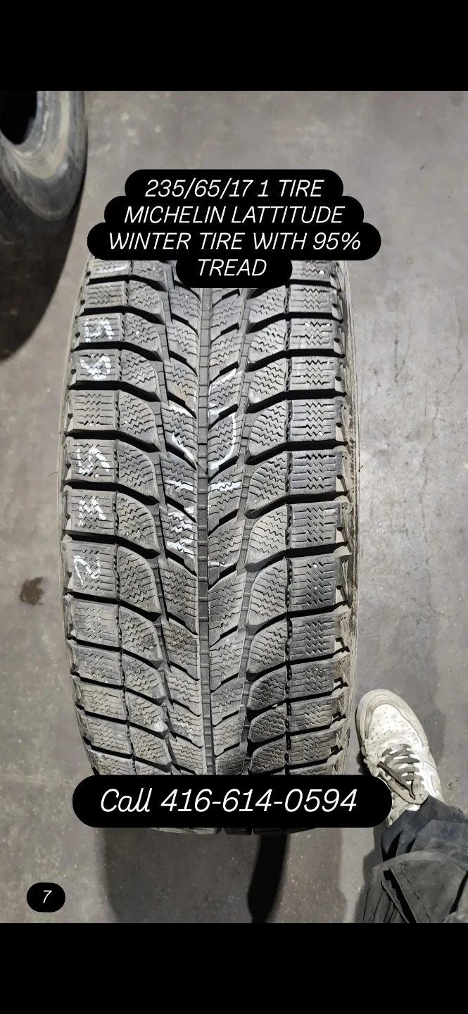 23Selling a Michelin Latitude winter tire. It's size 235/65/17 and has 95% tread remaining!