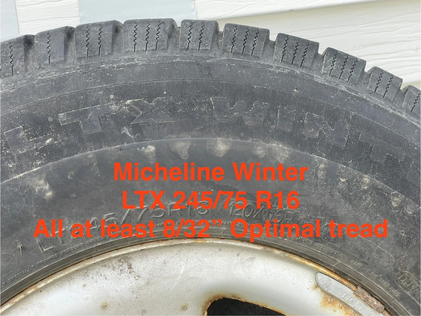 10Selling a set of Michelin LTX Winter tires, size 245/75R16. They have at least 9/32" of tread remaining, so they're ready for another winter season!