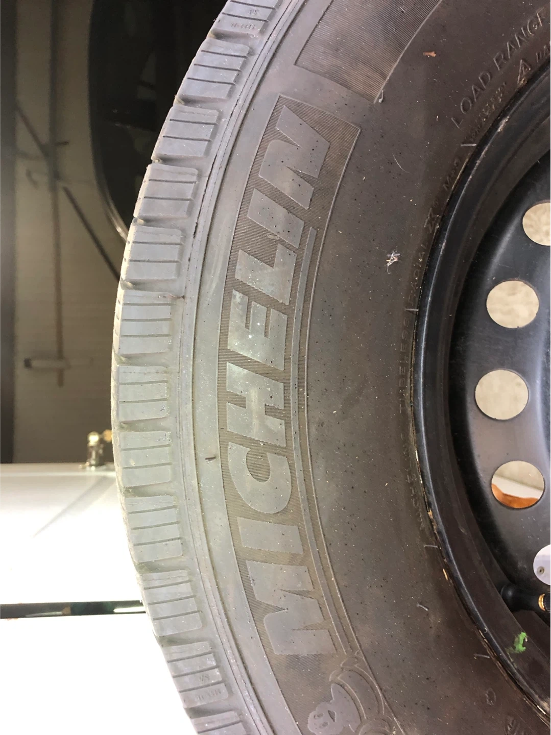 Selling a used Michelin tire. It shows some signs of wear, as you can see in the pictures.