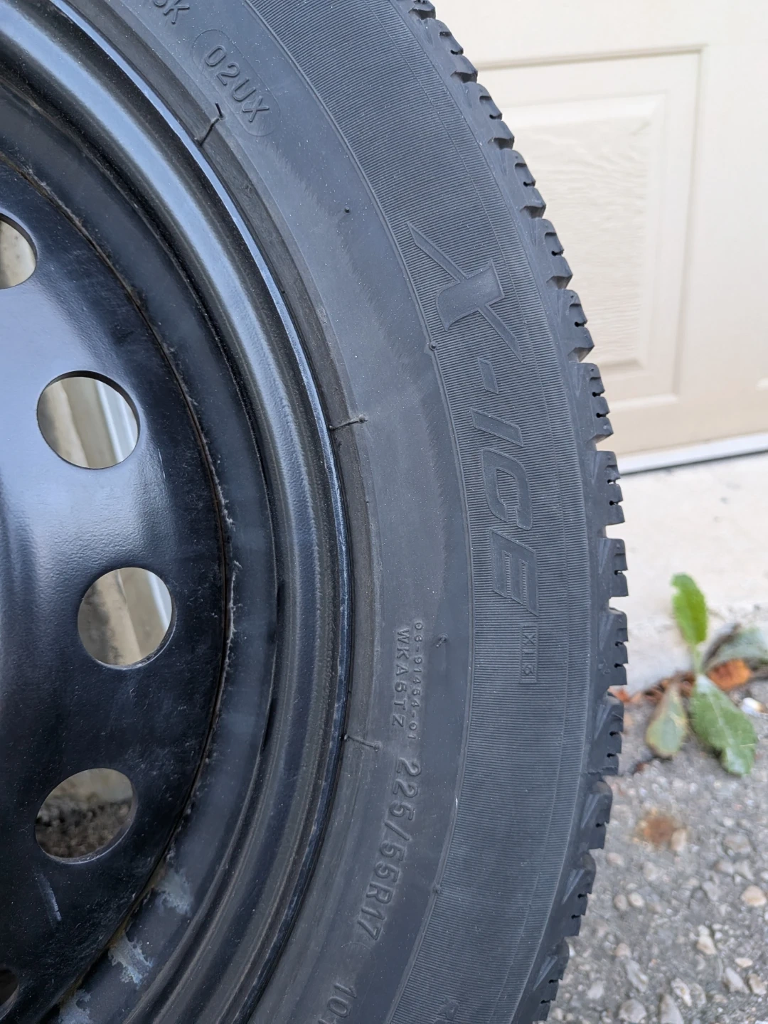 5Selling set of 4 Michelin X-Ice Snow tire, size 225/55R17 plus steel wheels. $425 for the set. Only 2 seasons on tires with very minimal winter driving (they were on my elderly mother's car). And just one season for the wheels.