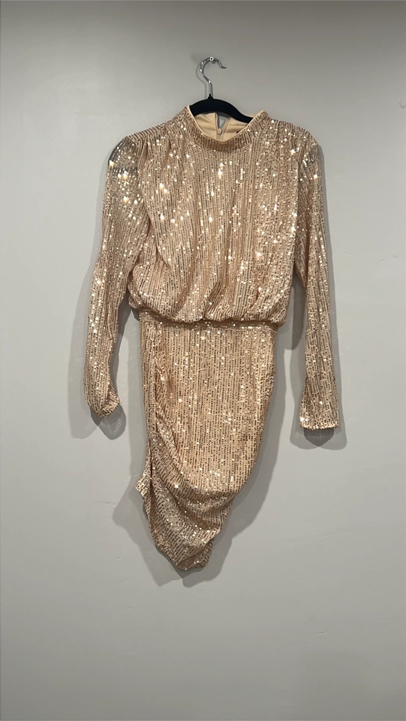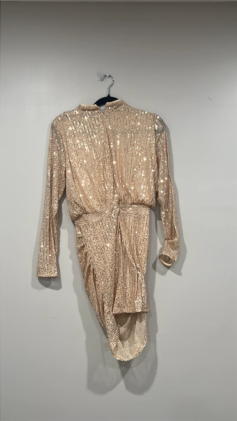 Buy & SellSequin Cocktail DressSequin Cocktail Dress$25Sparkly champagne coloured sequin dress with long sleeves. It features a ruched waist and an asymmetrical hemline. Perfect for a night out!ConditionNewSizeExtra small WHERE TO MEETWitmer parkView MapSELLERverifiedBismaWitmer Park650 reviews0 chats·0 favorites·5 viewsSEND CHAT TO SELLERHi Bisma! I’m interested in your listing.Hi Bisma! I’m interested in your listing.Get the Karrot app to chatSign In to chat