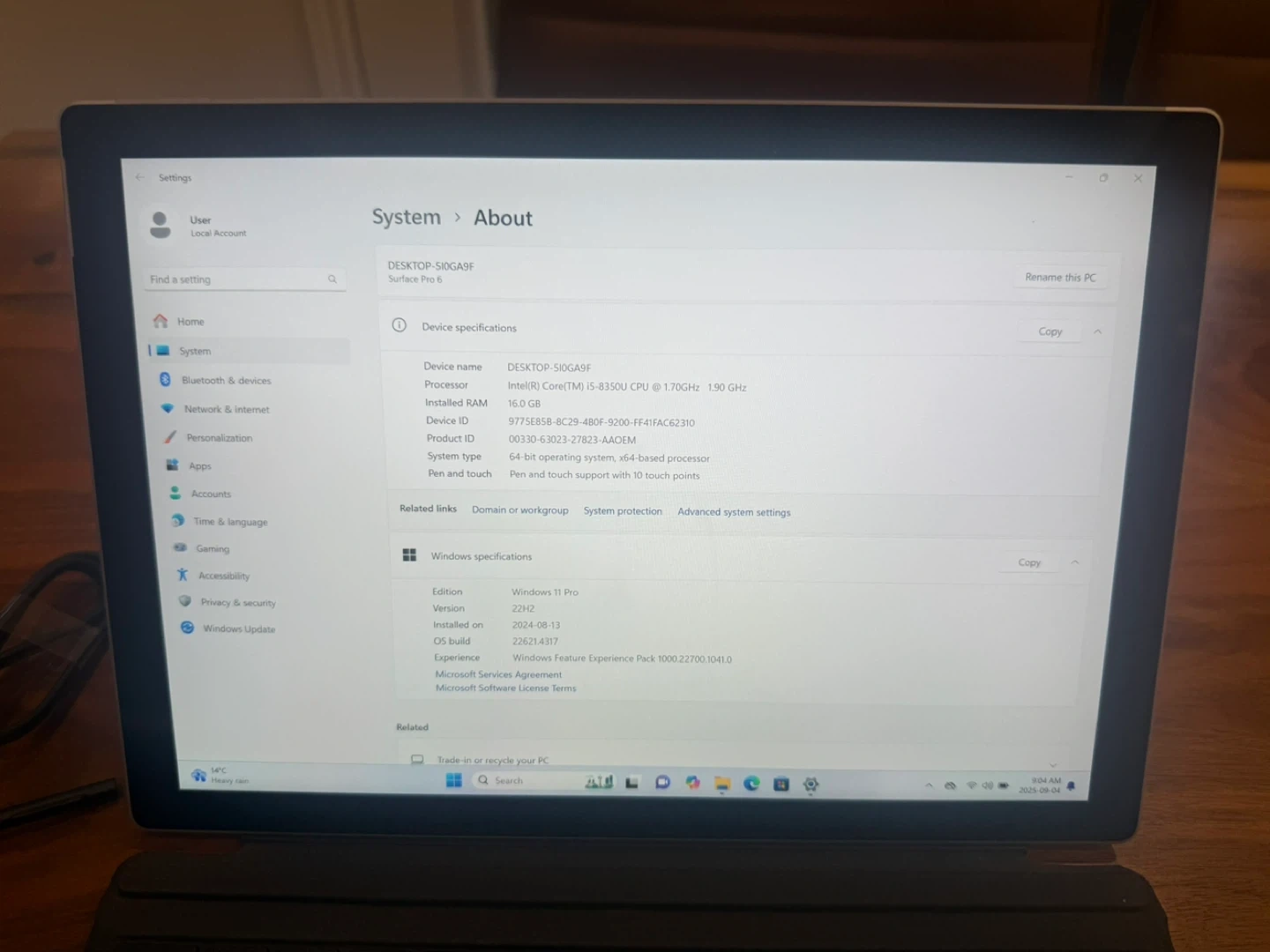 Selling a Microsoft Surface Pro 6. Comes with the keyboard and charger. It has 16GB of RAM 256GB SSD and an Intel Core i5-8350U CPU @ 1.70GHz. Includes the box! Touch screen