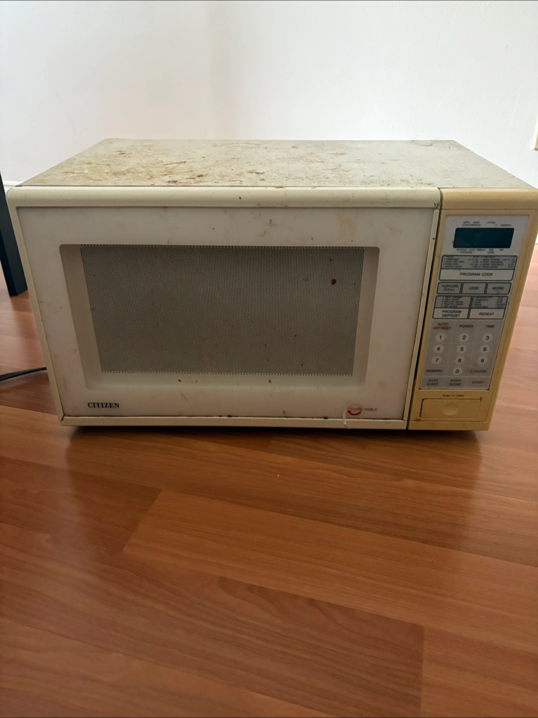 Extremely old microwave that still works but I’m not sure you’d want to. Probably great for people who want to deconstruct it for parts
