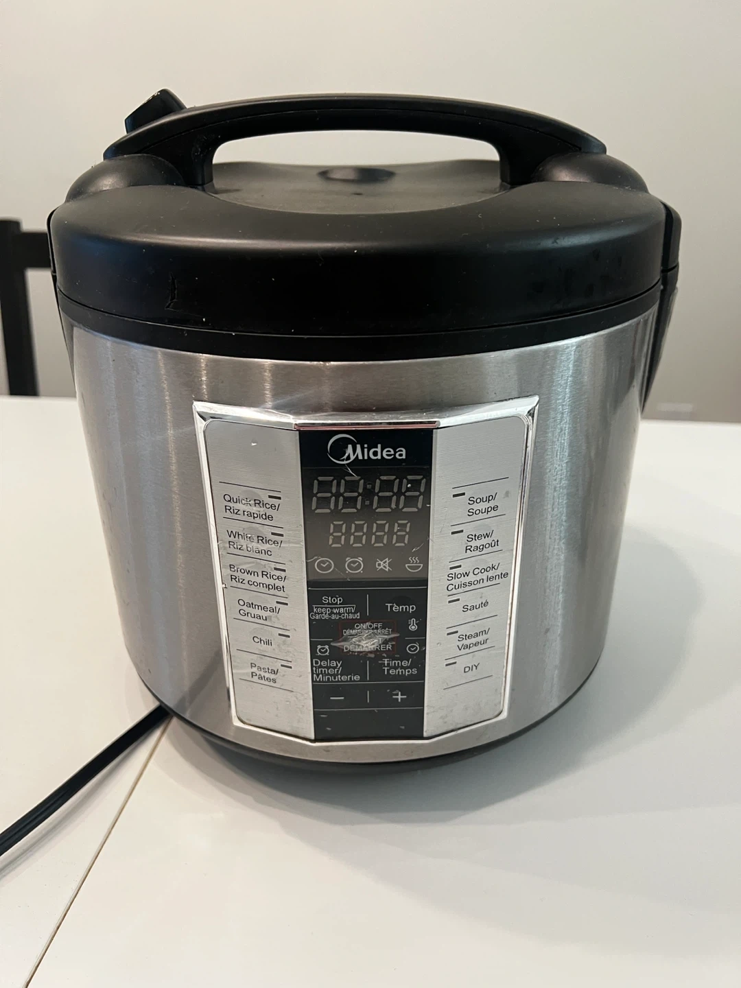 Selling a Midea multi-cooker! It has settings for quick rice, white rice, brown rice, oatmeal, chili, and pasta. It also has settings for soup, stew, slow cooking, sauteing, steaming, and even a DIY option! It also has a delay timer