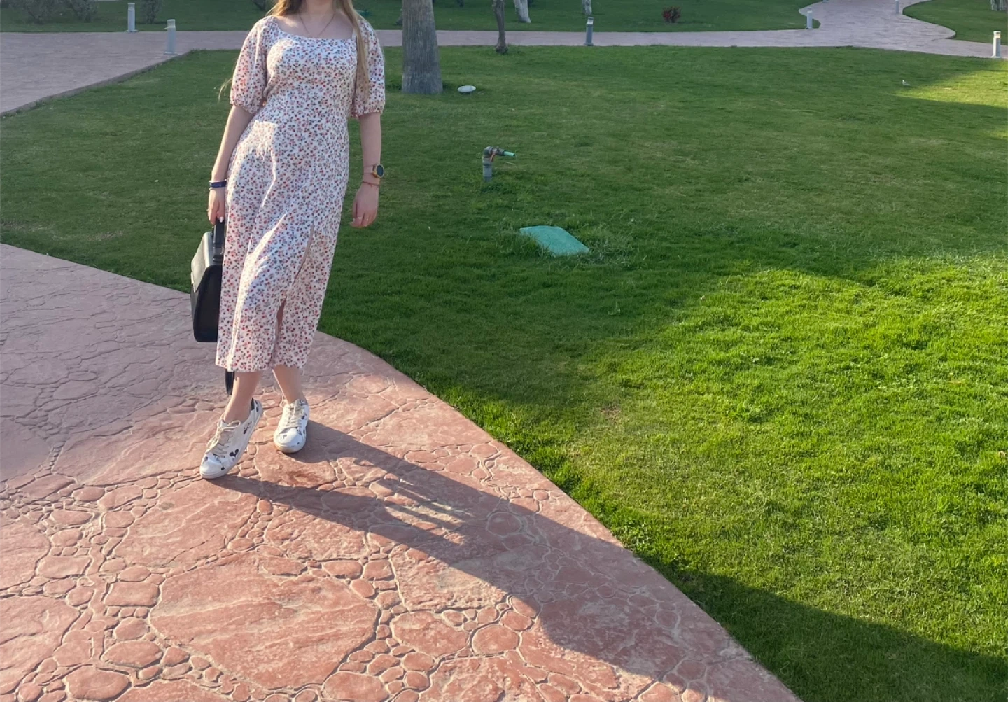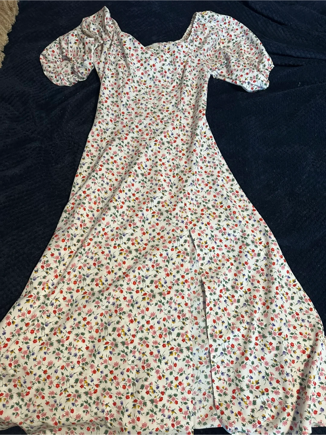 23Selling a cute floral print midi dress with an off-shoulder design and a side slit. It's perfect for summer days or evenings out!