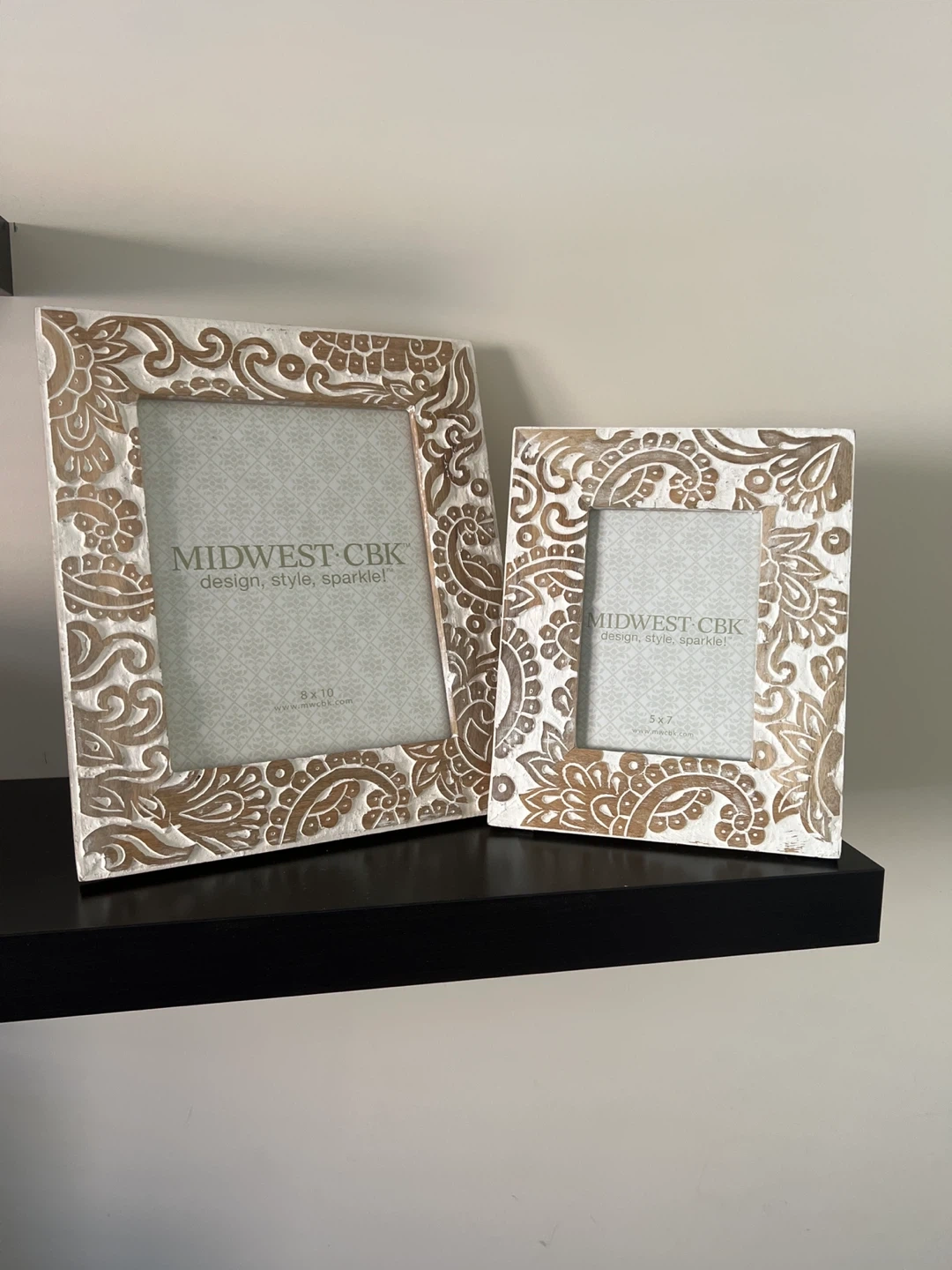 Two beautiful picture frames from Midwest-CBK! One is sized for an 8x10 photo and the other for a 5x7. They have a lovely carved design and would look great in any home. $20 for both