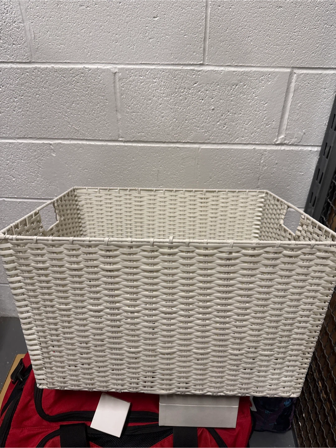 Selling a woven storage basket in white! It's in great shape and perfect for organizing things around the house