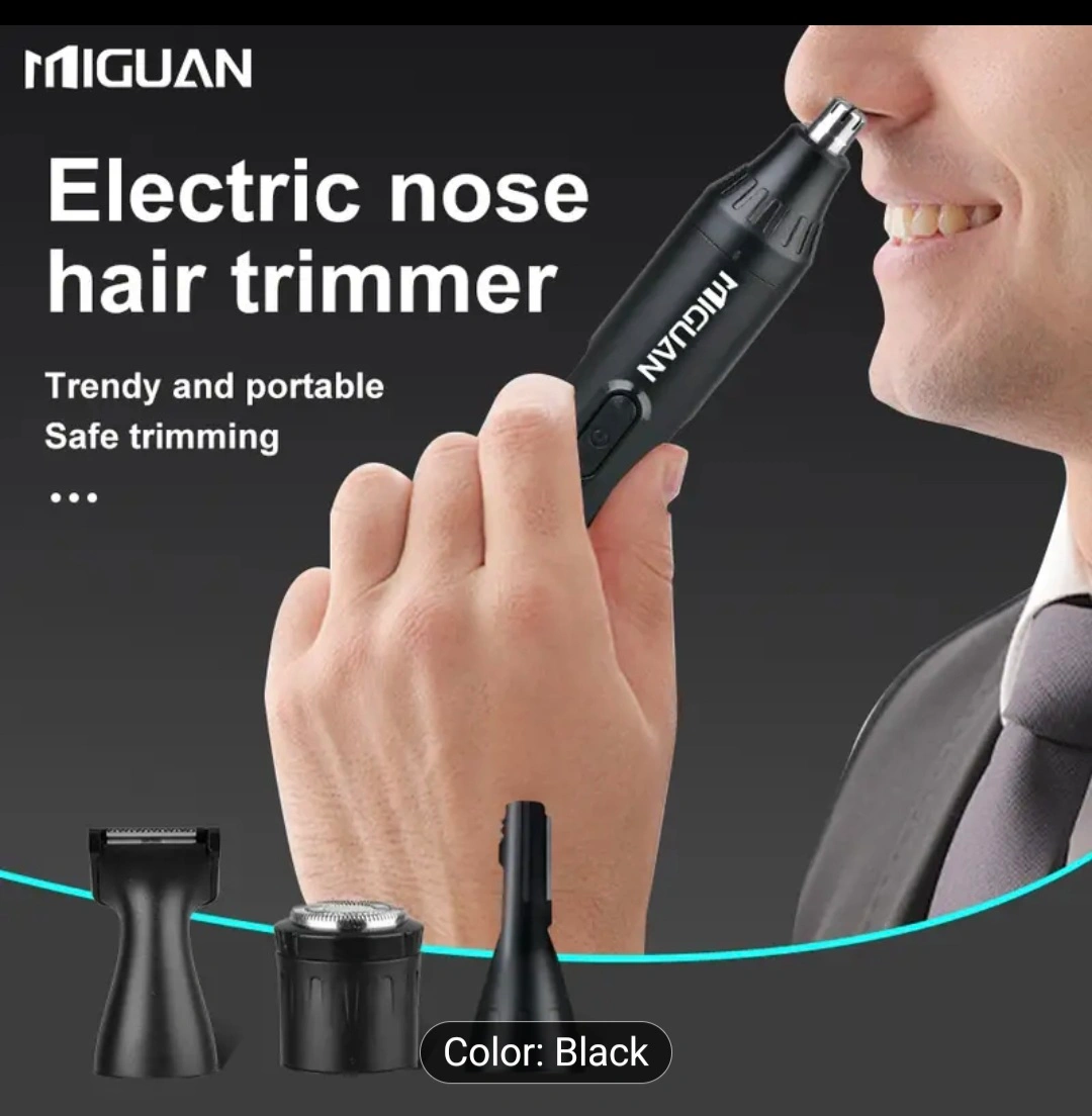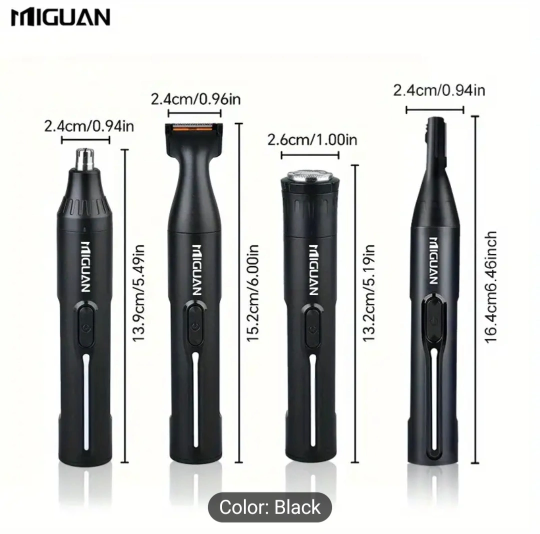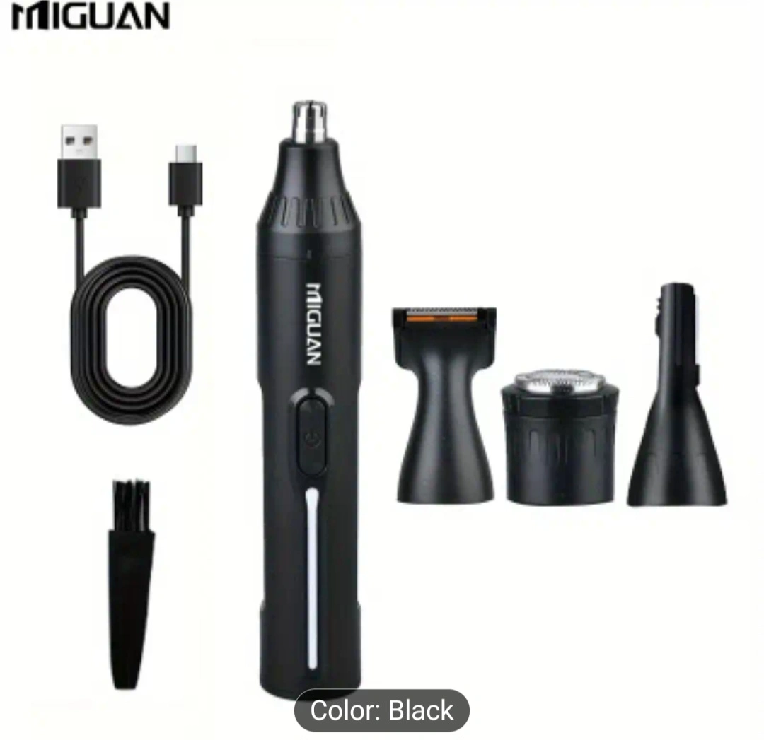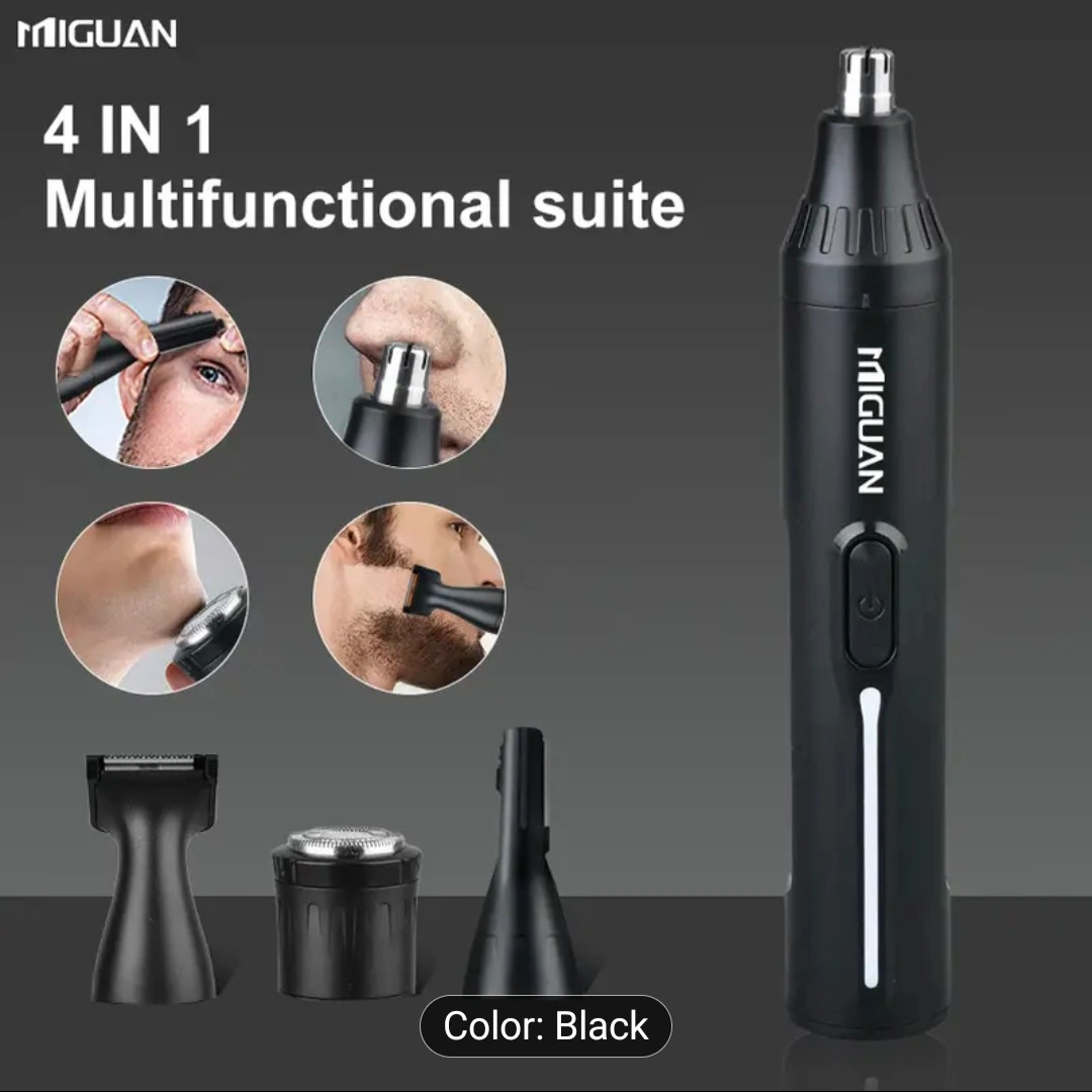 I'm selling a MIGUAN 4 in 1 multifunctional trimmer in black! It's a versatile grooming tool that includes attachments for: - Nose hair trimming - Eyebrow trimming - Sideburn trimming - Beard trimming The blade is removable for easy cleaning