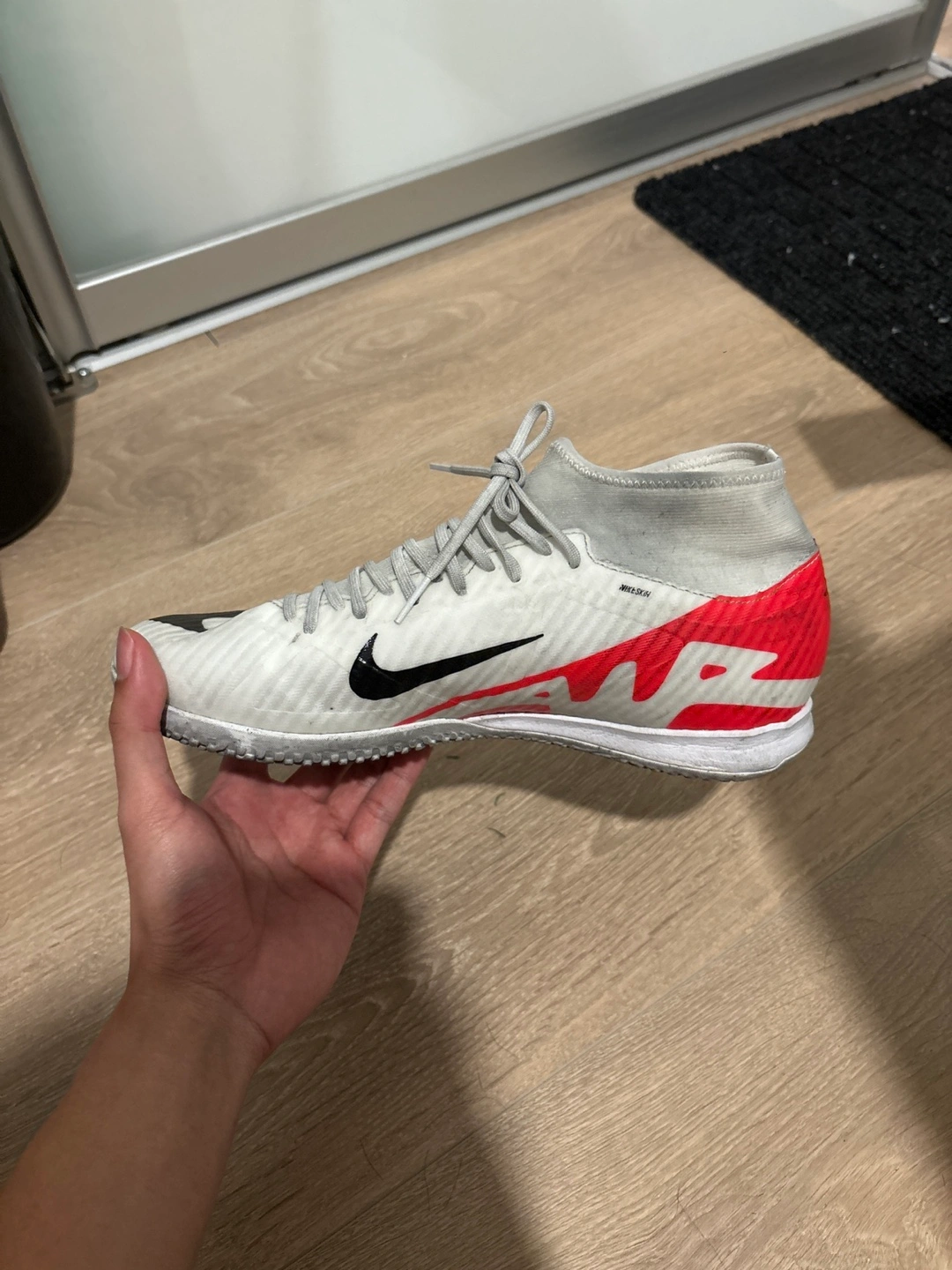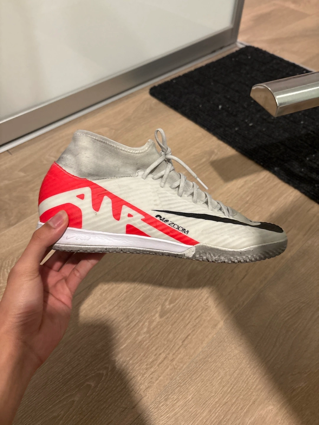 Indoor court soccer shoes. Grey and red colourway. Size not specified. Size 9.5 nike Airzoom