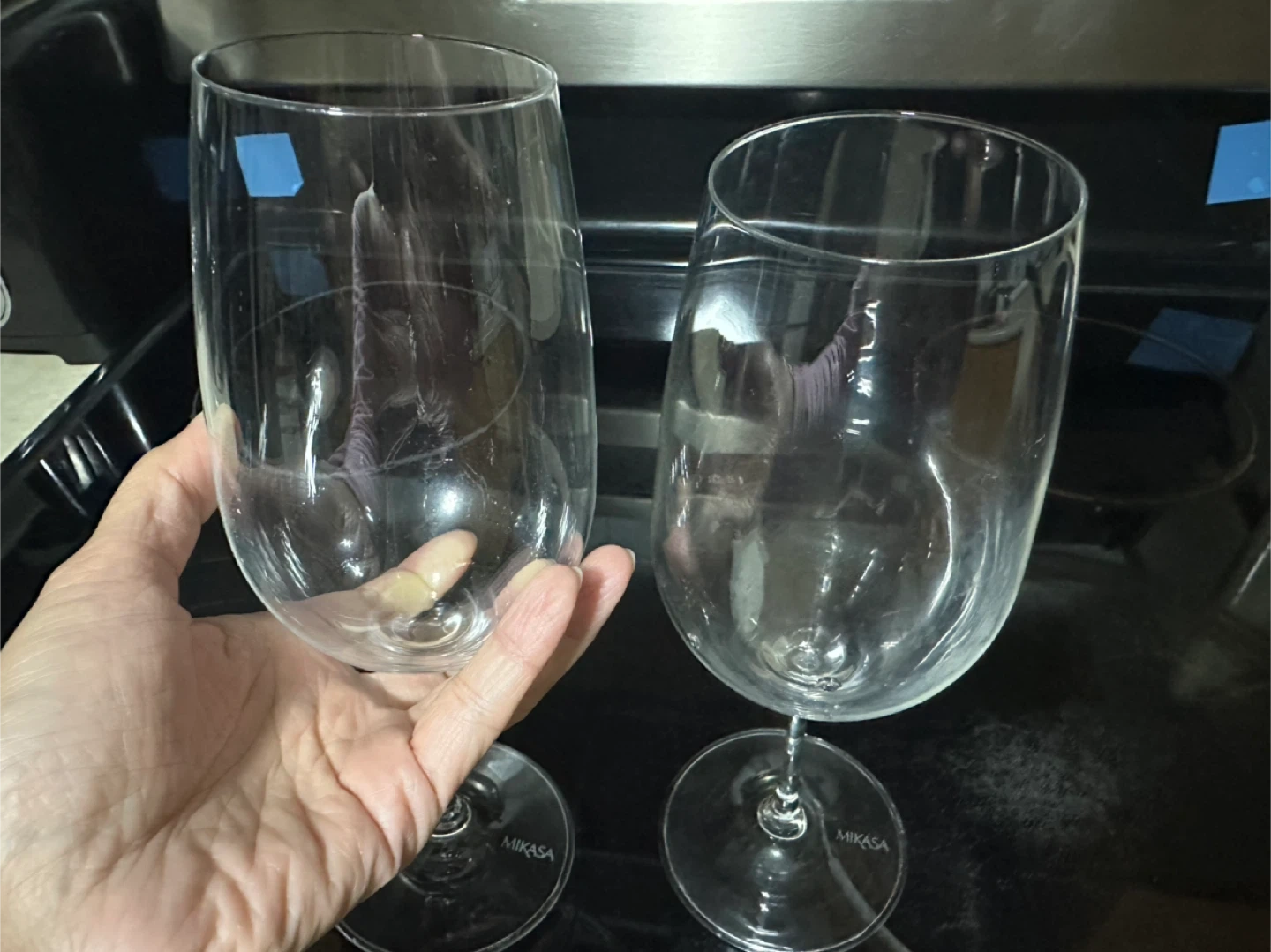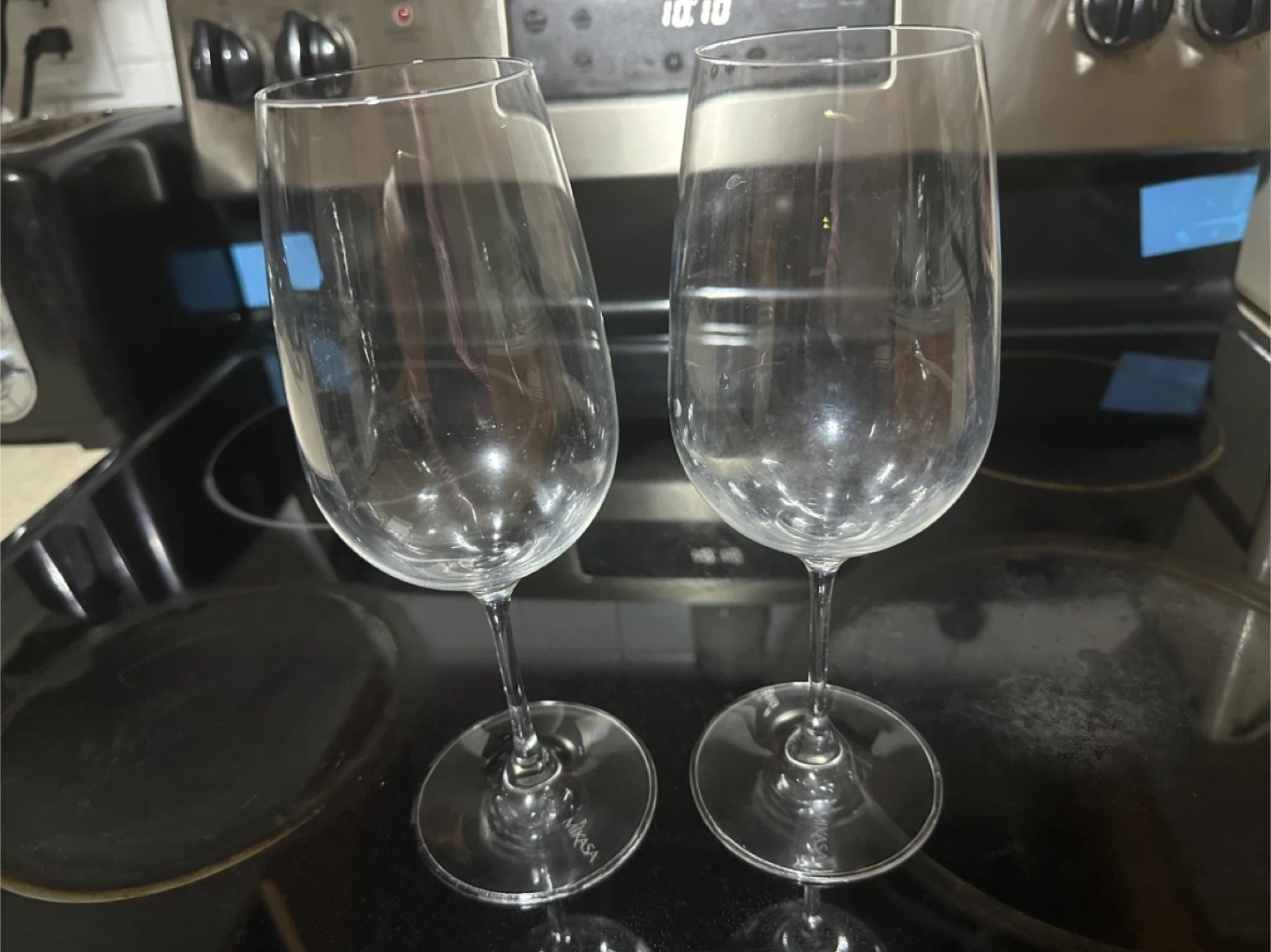 Selling a set of two Mikasa wine glasses. They're in great shape and ready for your next dinner party or cozy night in! They're perfect for any wine lover No crack no chip at all!