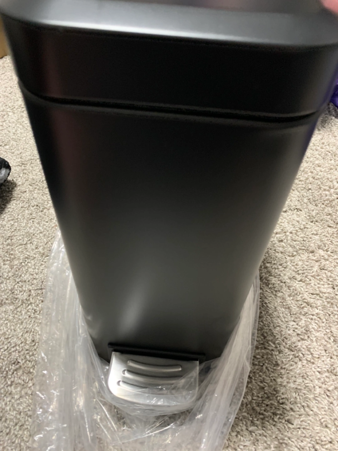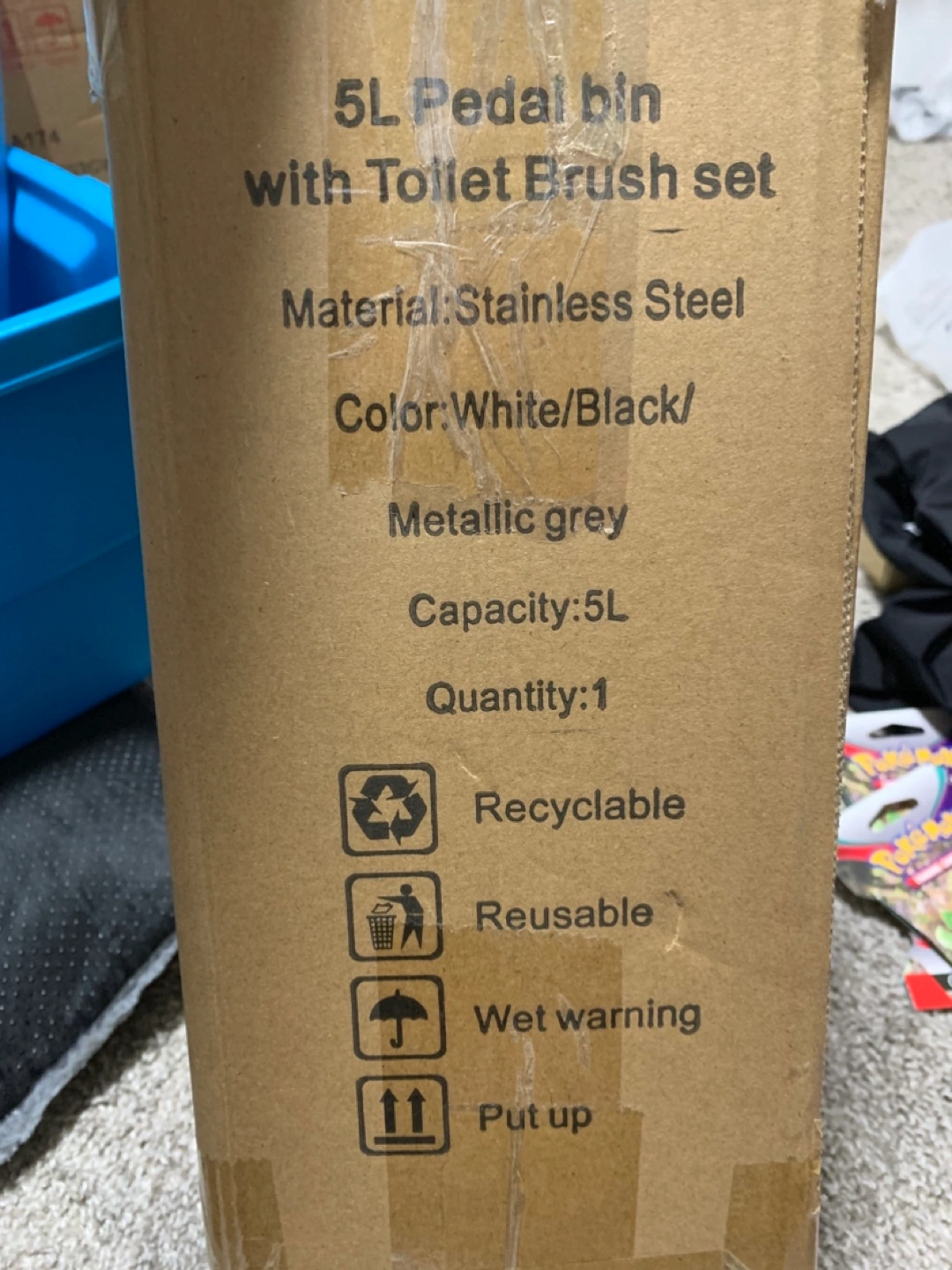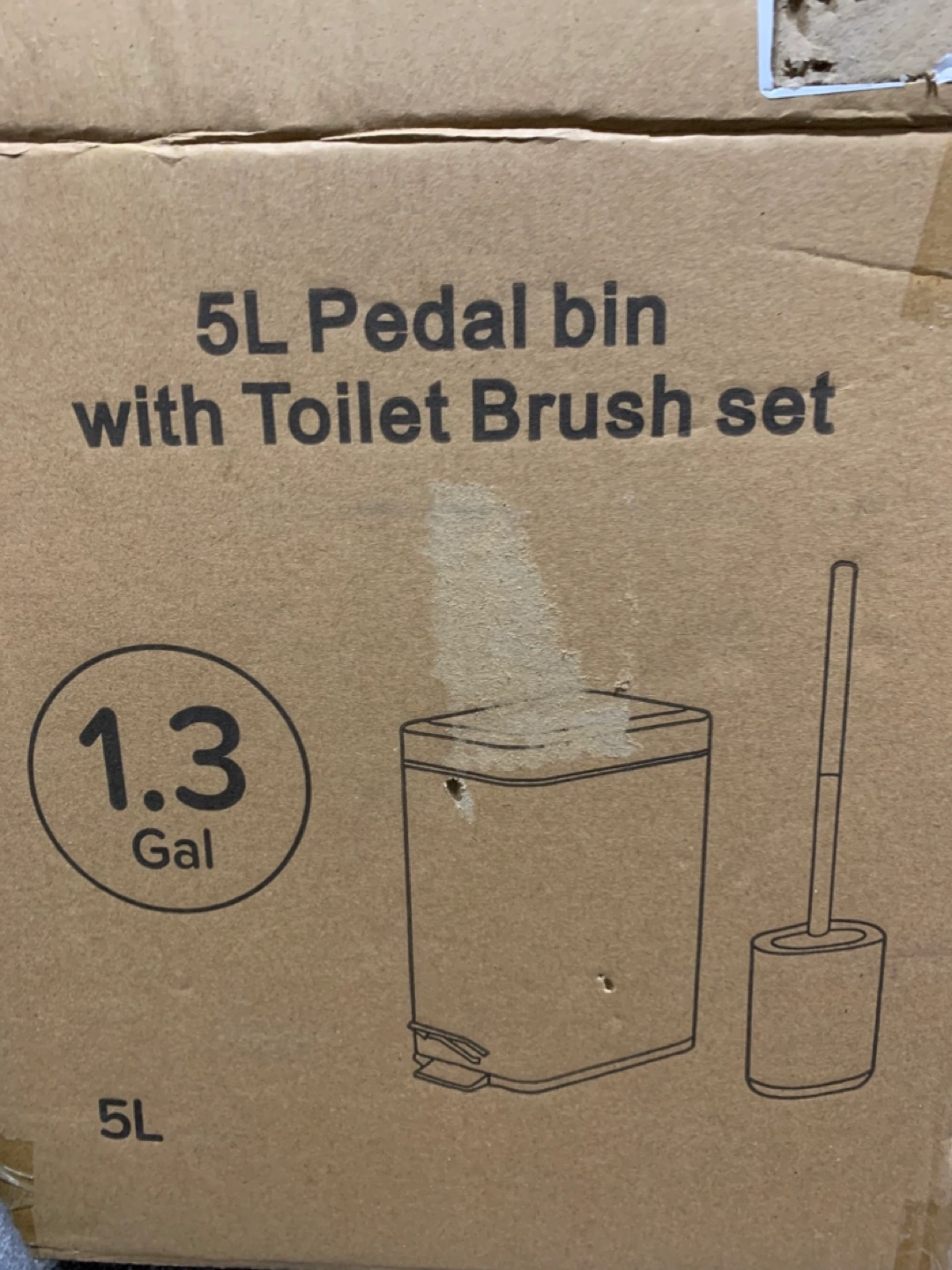 New 5L pedal bin and toilet brush set. Stainless steel construction. Black finish. Includes a matching toilet brush and holder.