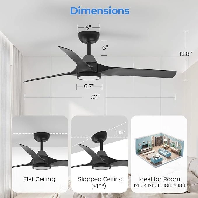 Upgrade your space with this brand new, open-box Mildear 52" ceiling fan! Featuring a modern black design and a whisper-quiet, energy-saving DC motor, it's perfect for both indoor and outdoor use. The fan has 6 speeds, a dimmable LED light with warm/cool settings, and comes with a remote control for easy operation. โ ๏ธ Final Sale โ No Returns, No Warranty. Check & test on pickup. ๐ Pickup in St. Catharines โ North. Available until sold.