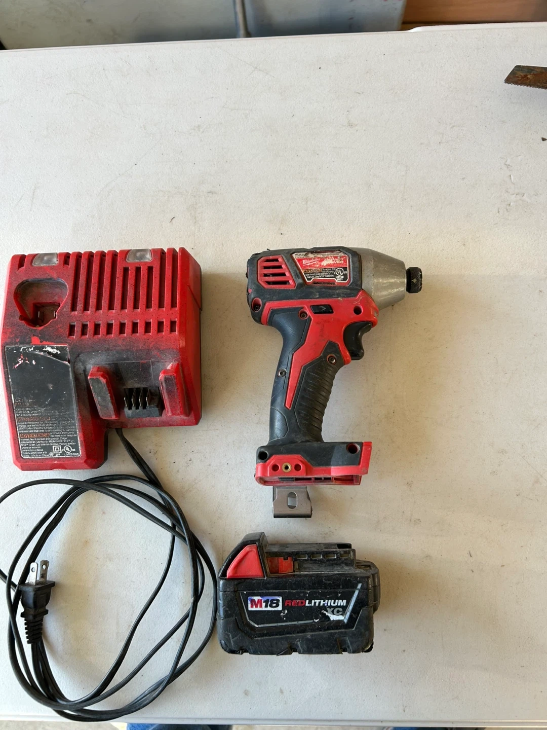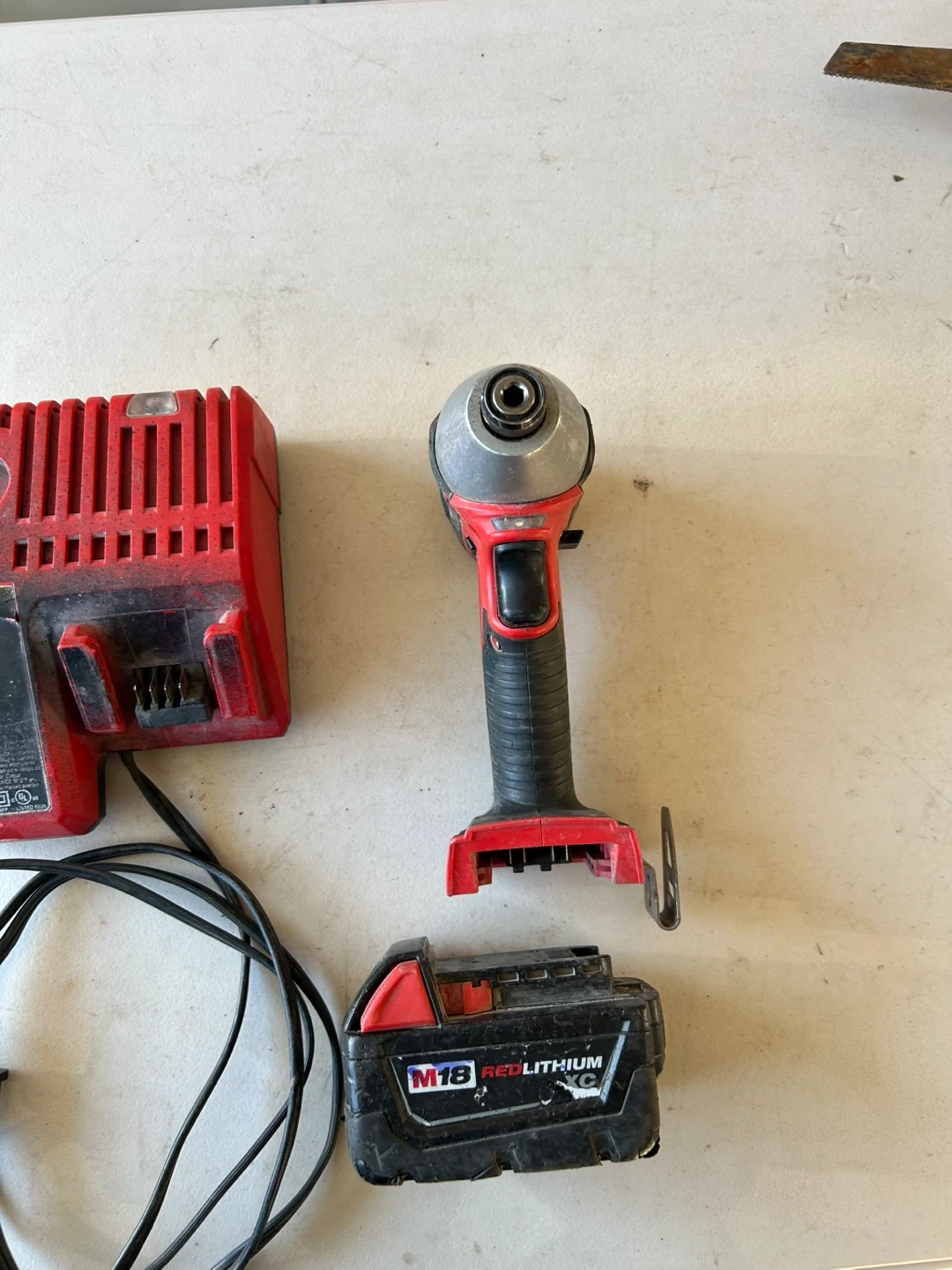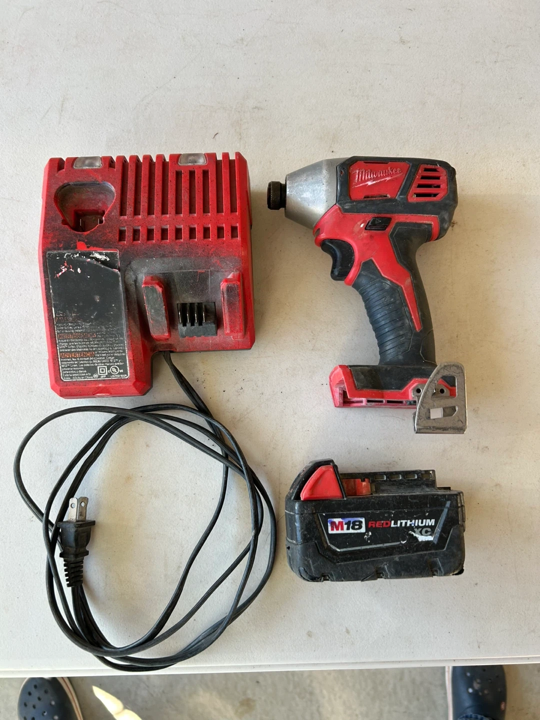 170Milwaukee M18 1/4” hex impact drill with battery and charger.