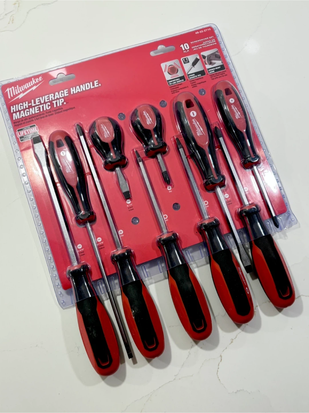 135Milwaukee 10pc Screwdriver Set - Phillips, Slotted, Square Heads, New, Sealed $35 firm