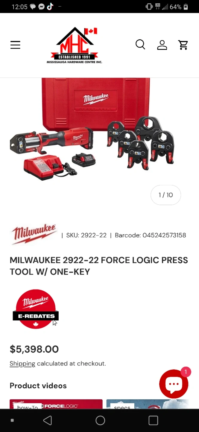 18Selling a Milwaukee 2922-22 Force Logic Press Tool with One-Key.