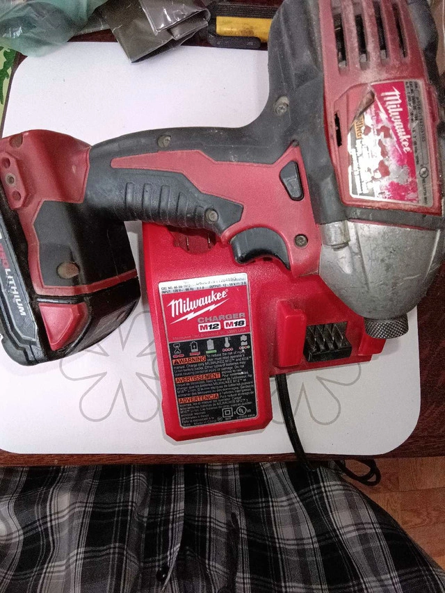 25For sale is a used Milwaukee M18 cordless impact wrench, a robust tool designed for heavy-duty fastening tasks. It shows signs of wear but is fully functional, ready to tackle your projects. The kit includes a charger and battery. Additional specifications: * Brand: Milwaukee * Voltage: 18V * Cordless If the ad is up, the wrench is available, so don't hesitate to get in touch!