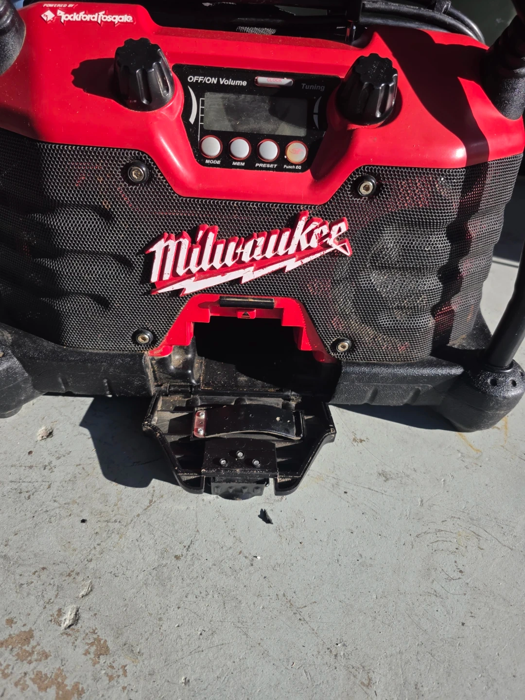 10Selling a Milwaukee jobsite radio. It's powered by Rockford Fosgate, offering great sound quality on the job site. Has an aux input, digital display and tuning. Great for listening to music or sports while you work!