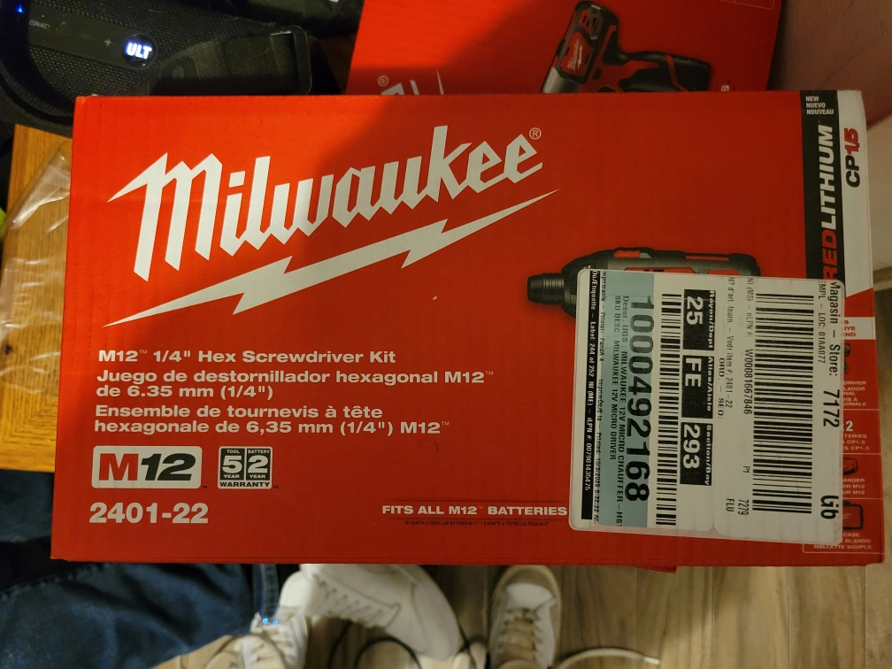 9Selling a Milwaukee M12 1/4" Hex Screwdriver Kit, model 2401-22. It fits all M12 batteries . brand new in box. retails for 178 selling for 150