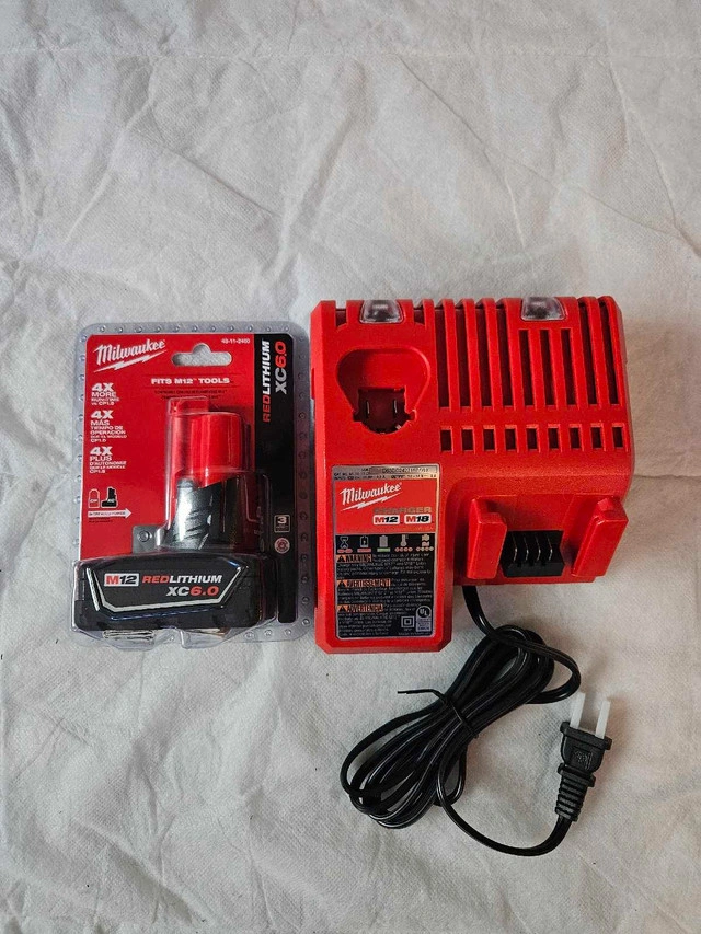 65Brand new Milwaukee M12 Red Lithium XC6.0 battery along with its compatible charger. * M12 REDLITHIUM XC6.0 Battery * Optimized for M12 tools * Extended runtime and battery life * Durable If the ad is up, the item is available!