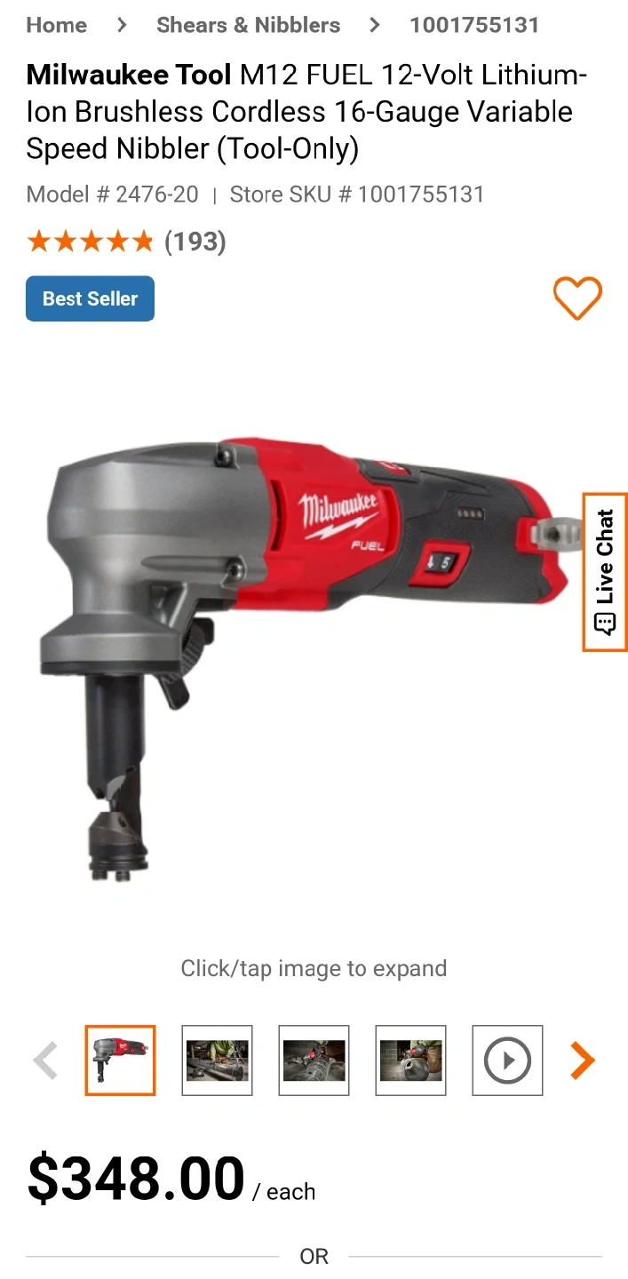 10Selling a Milwaukee M12 FUEL 12-Volt Lithium-Ion Brushless Cordless 16-Gauge Variable Speed Nibbler. Originally bought for $348.00