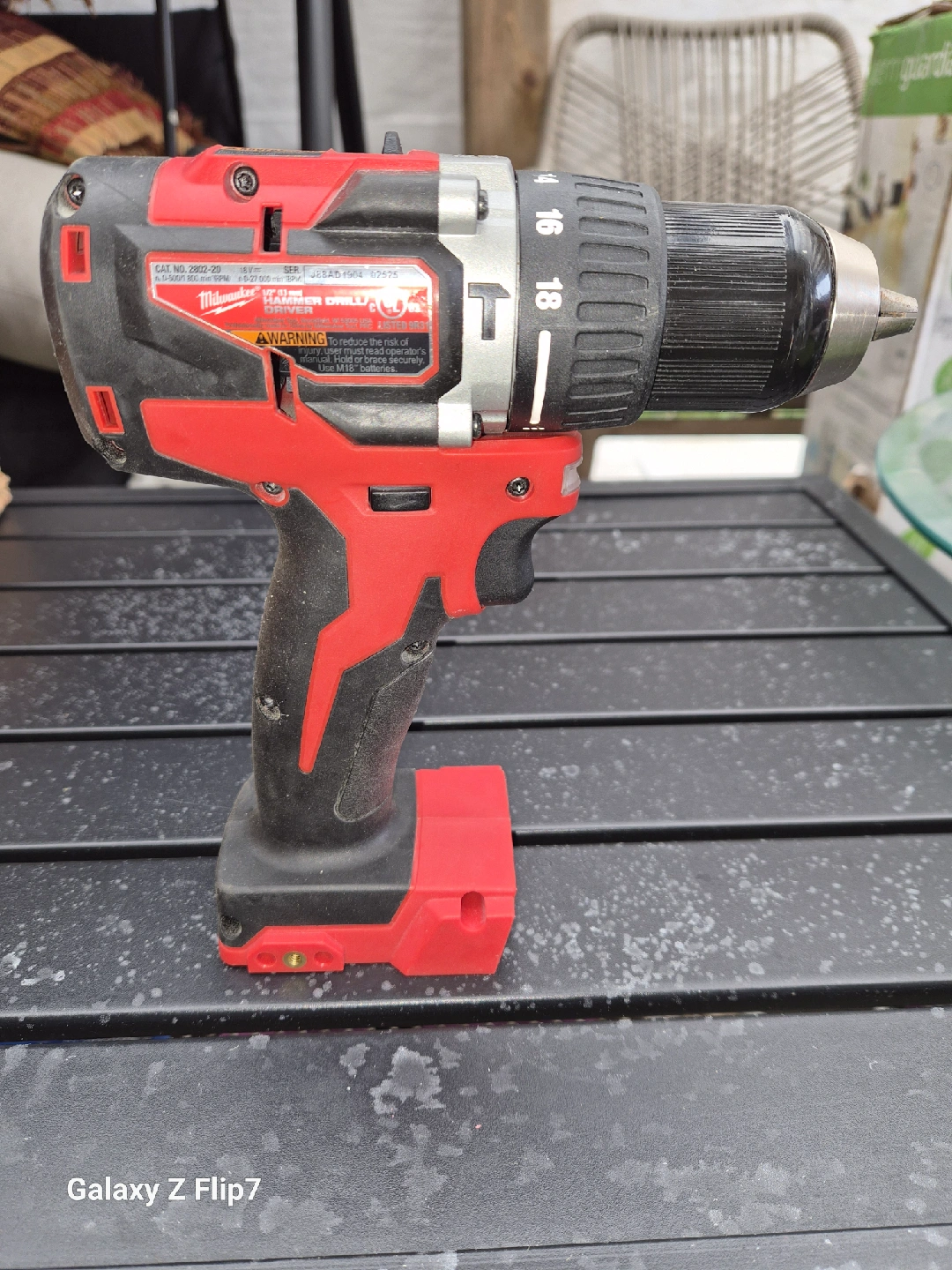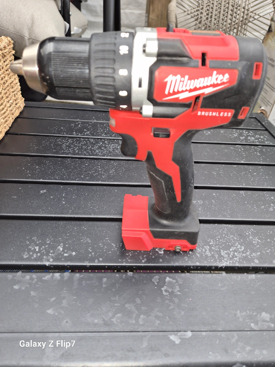 Selling a Milwaukee M18 cordless drill. It's in used condition but still works great! Perfect for any DIY projects or professional use. It has a brushless motor for efficient power and longer runtime. The drill is red and black. It's part of the M18 series from Milwaukee