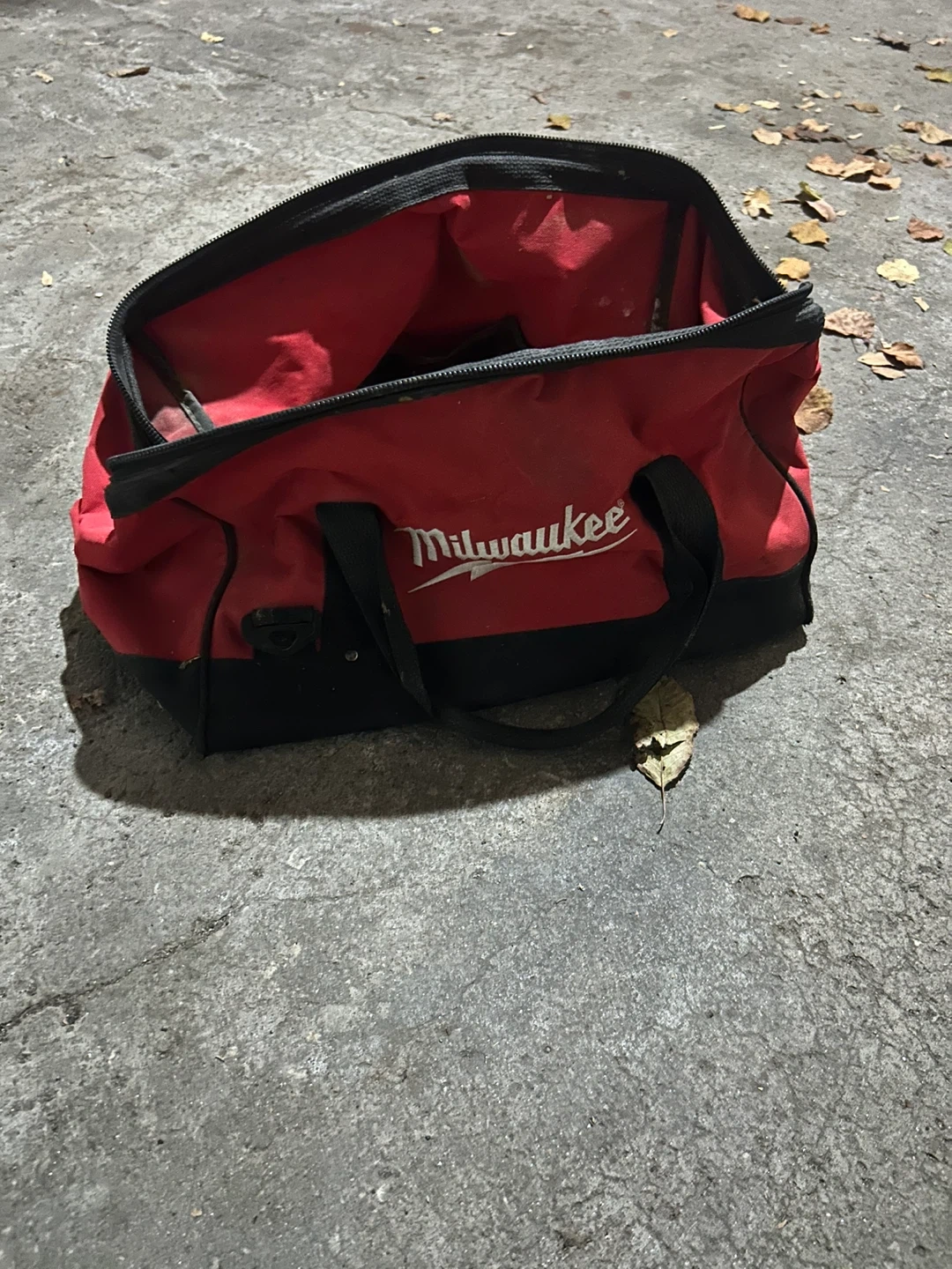128Selling a used Milwaukee tool bag. It's red and black, perfect for carrying your tools around the job site or for storage in your garage. It's in good condition and ready for a new owner