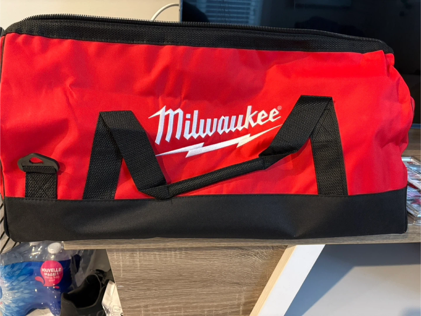 Selling a Milwaukee tool bag in red and black. It's in great shape and ready to hold your tools!