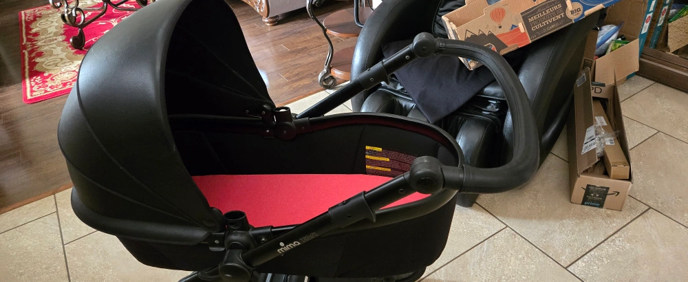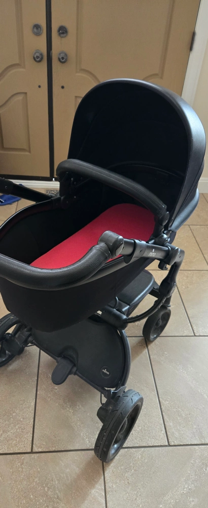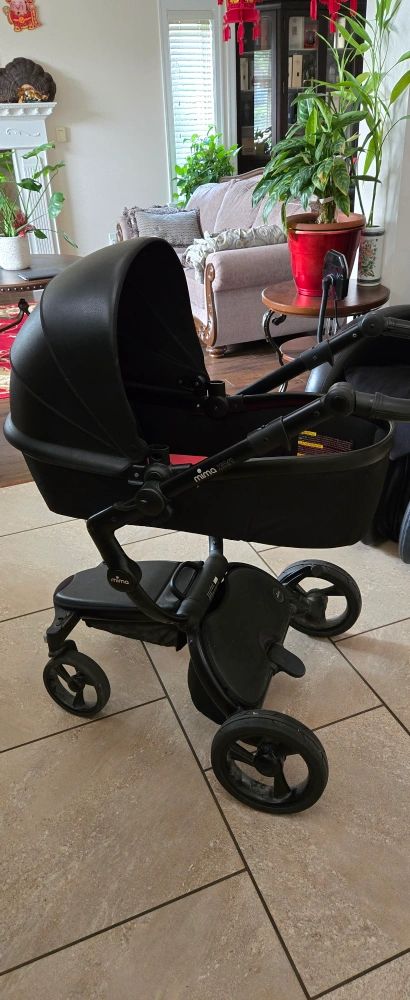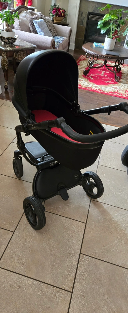 Model: Mima Xari (Black) Comes with bassinet Interior padding: Ruby Red Few scuffs from wear and tear on frame There's a crack in left back wheel Asking price $200