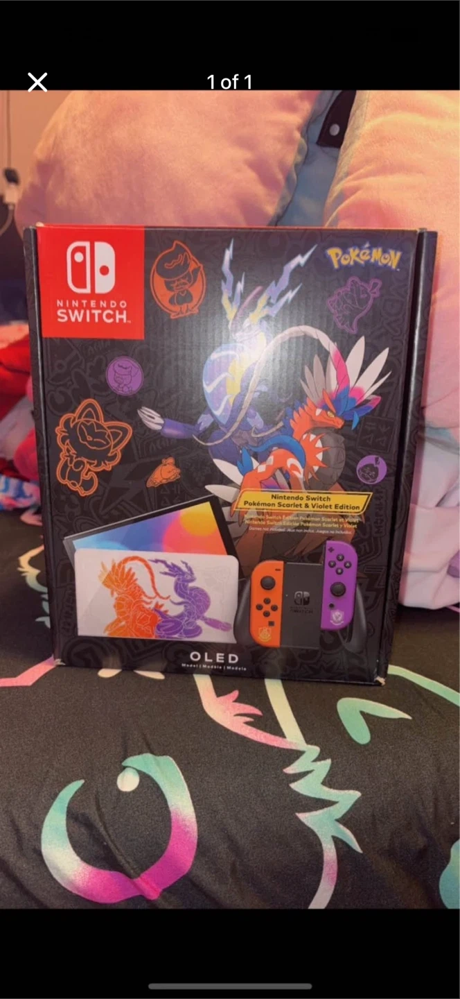 Nintendo Switch OLED model in the special Pokémon Scarlet & Violet Edition. This console features vibrant colours and exclusive Pokémon designs. It's the perfect way to enjoy your favourite games on the go or at home! I also have a matching carrying case for 20 if your interested