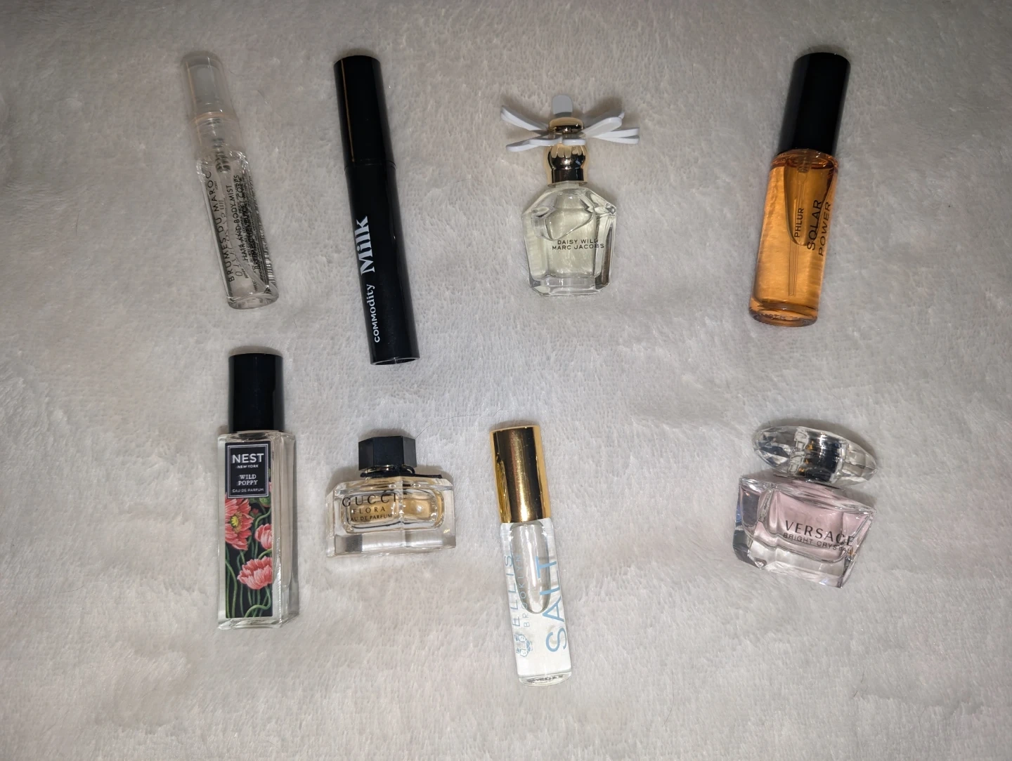 10$10 each. Originally from different Sephora boxes. Brand New or used once to try out the fragrance. Gucci Flora eau de parfum 5ml. Versace Bright Crystal eau de toilette 5ml. Marc Jacobs Daisy Wild 5ml. Phlur Solar Power eau de parfum 5ml. Commodity Milk Scent Space: Expressive ml Moroccanoil hair and body mist 5ml. Ellis Brooklyn Salt eau de parfum 5ml. Nest New York Wild Poppy eau de parfum 6ml. Cash only and pick up on Quayside Drive in New Westminster