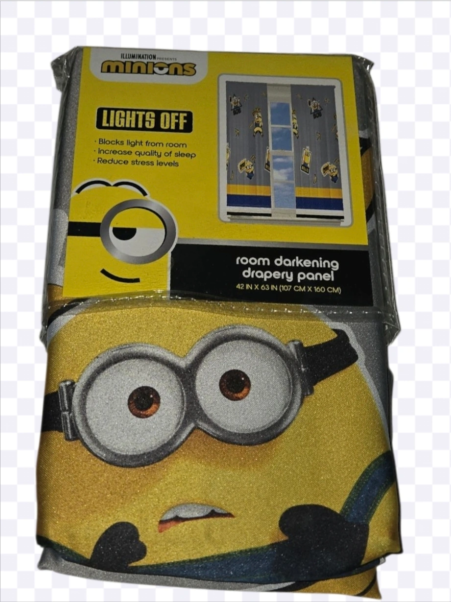 Brighten up your kiddo's room with this adorable Minions room darkening drapery panel! It measures 42 inches by 63 inches (107 cm x 160 cm). These panels block light from the room, which can increase the quality of sleep and reduce stress levels. Perfect for any Minions fan!