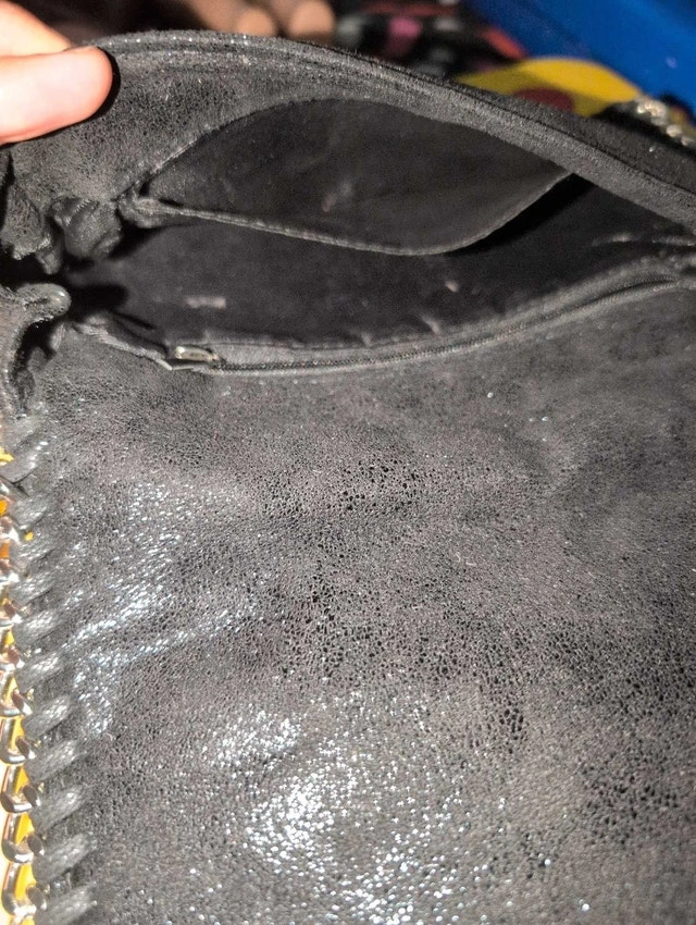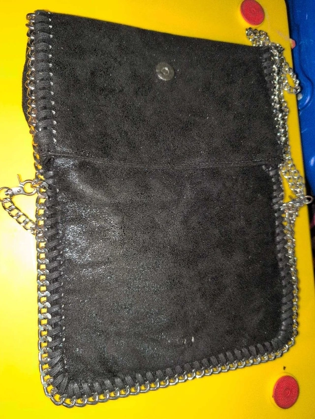 I'm selling a used crossbody bag. The bag has a chic chain which gives a good weight to the bag and is perfect for evenings out or adding a bit of edge to your everyday look. It's pre-loved, so it has some signs of wear, but it's still a stunning piece! If the ad is up, yes, it’s still available—no need to wonder!