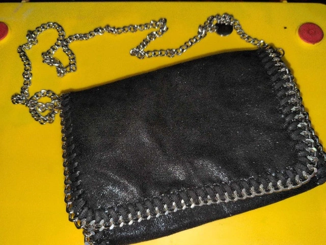 I'm selling a used crossbody bag. The bag has a chic chain which gives a good weight to the bag and is perfect for evenings out or adding a bit of edge to your everyday look. It's pre-loved, so it has some signs of wear, but it's still a stunning piece! If the ad is up, yes, it’s still available—no need to wonder!