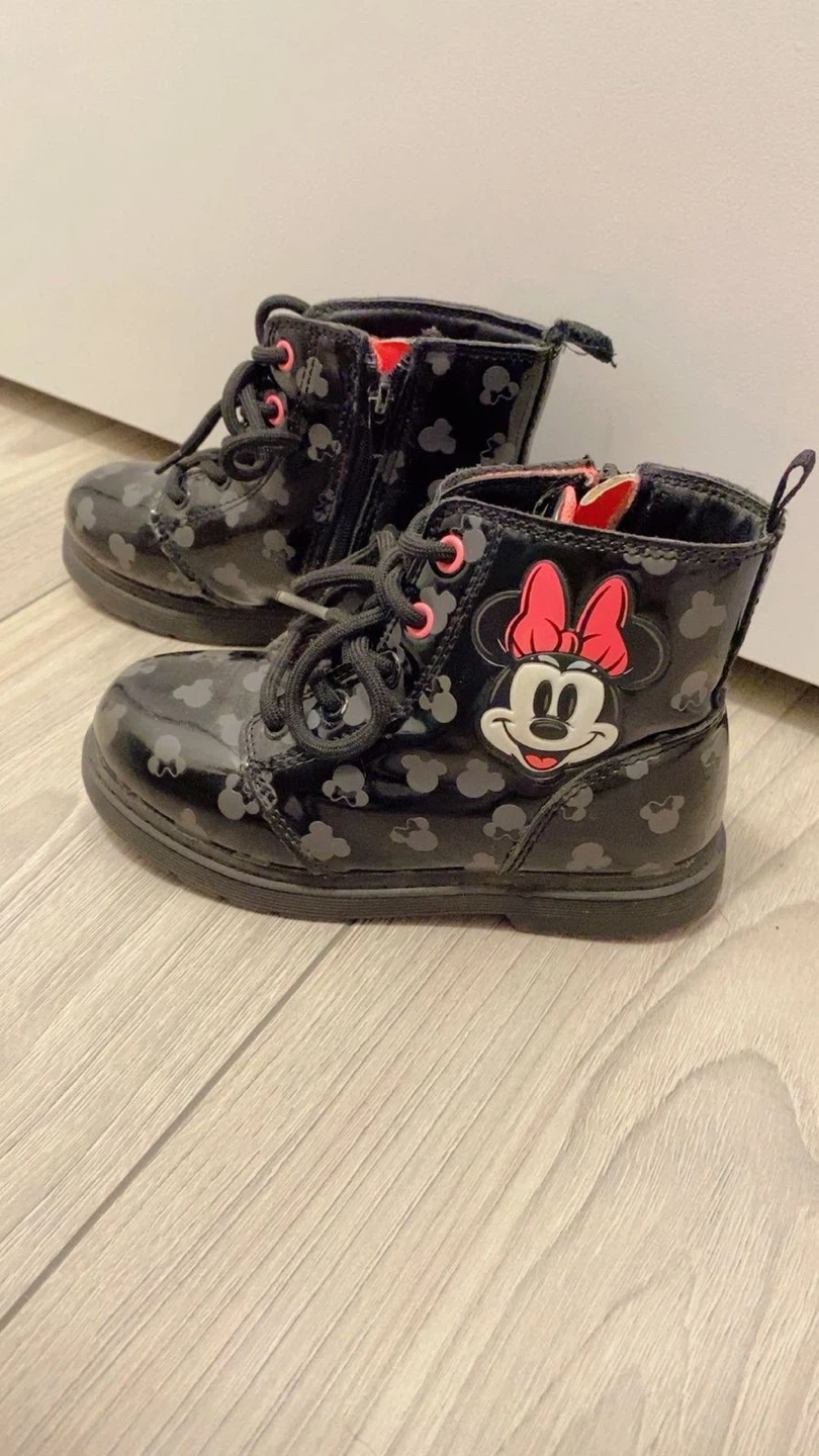 60These adorable Minnie Mouse boots are perfect for your little one! They're black with a Minnie Mouse design, and size 10. They have both laces and a zipper for easy on and off. Great for adding a touch of fun to any outfit!