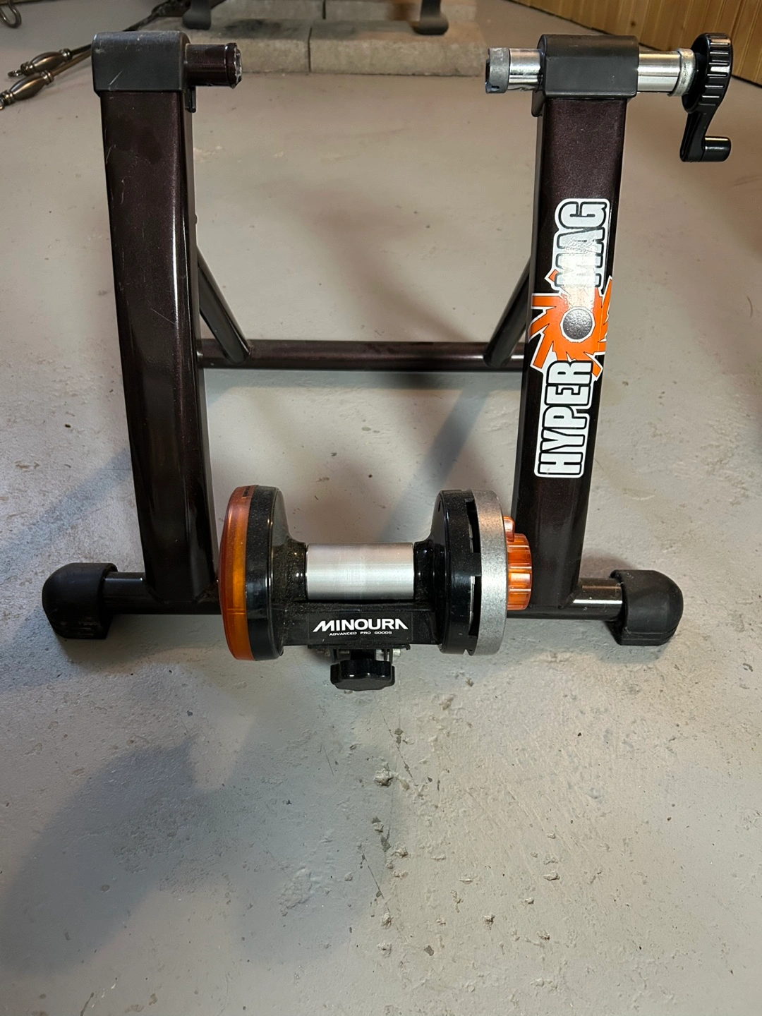 Indoor cycling trainer. Durable steel frame. Fluid resistance. Easy to use. Great for indoor training.