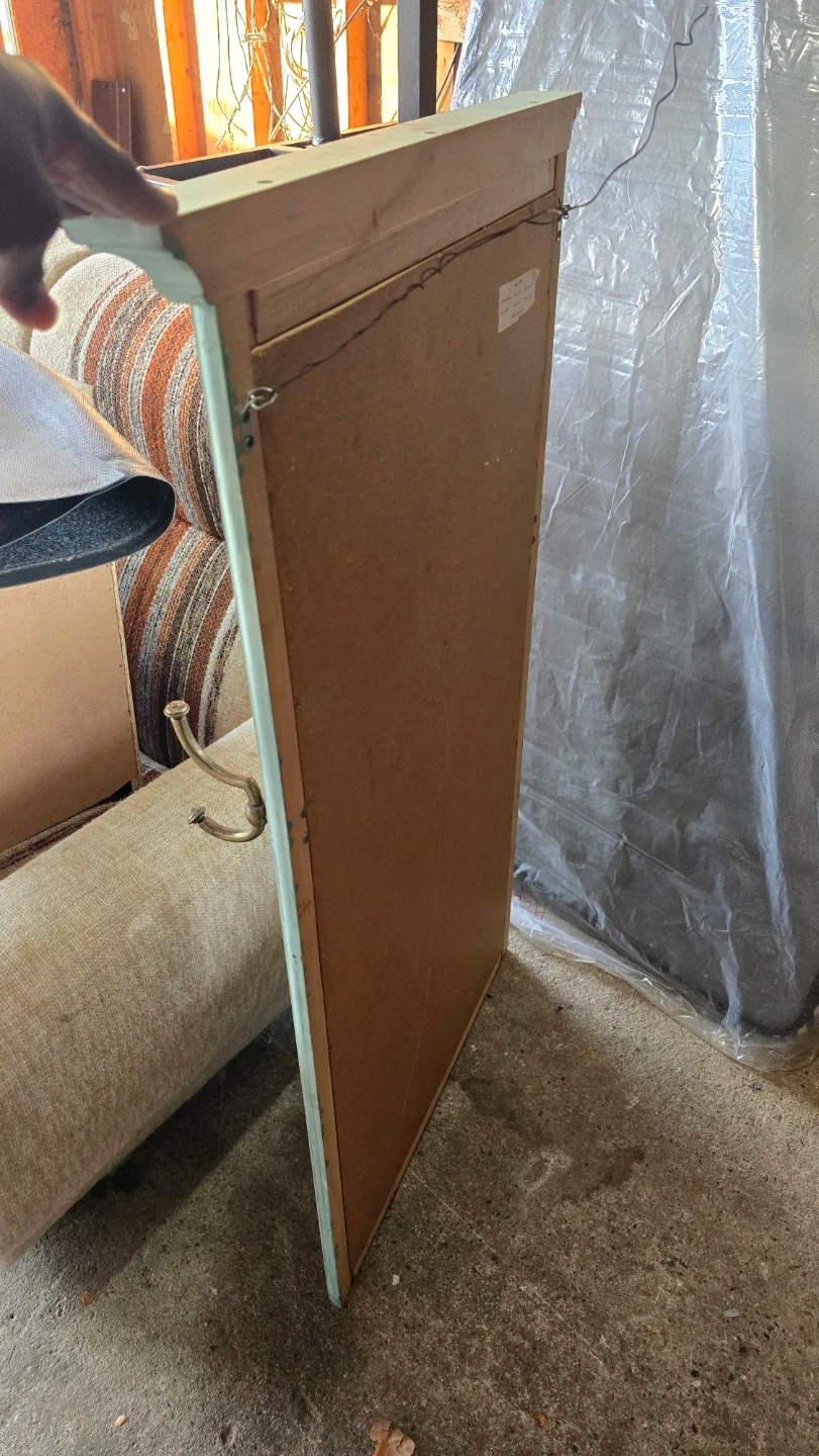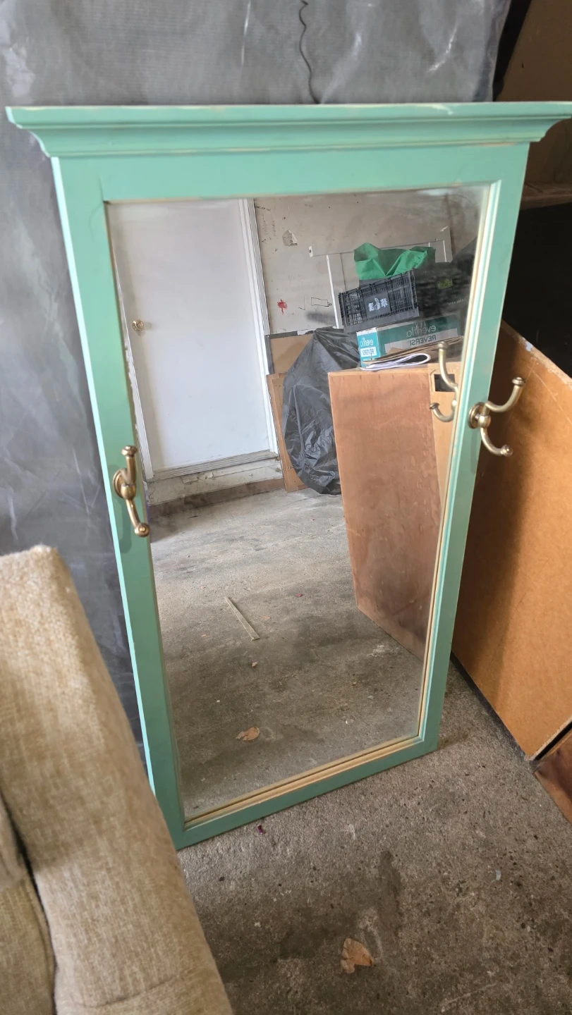 59Here's a lovely mint green framed mirror, perfect for adding a touch of colour to your space! It also comes with hooks, making it super practical for hanging keys or accessories. A great addition to any entryway or bedroom