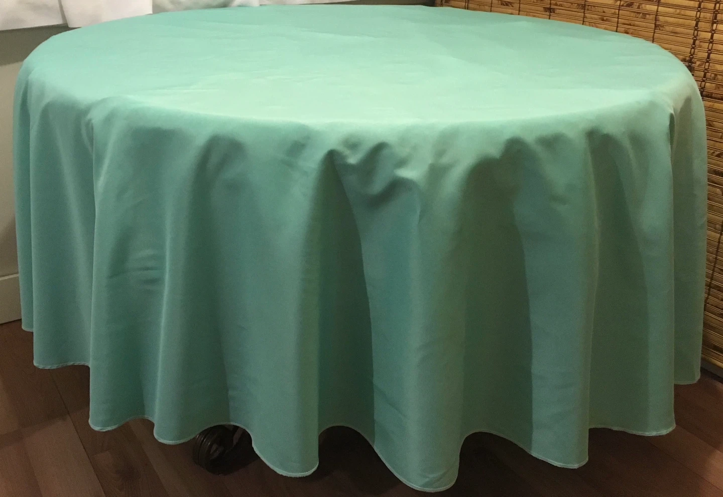 Selling a mint green tablecloth! Polyester fabric, It's in great condition and perfect and good for wedding/party/banquet/ dinning, Buffet. Measure 90” across. $20 each or $150 for 8.