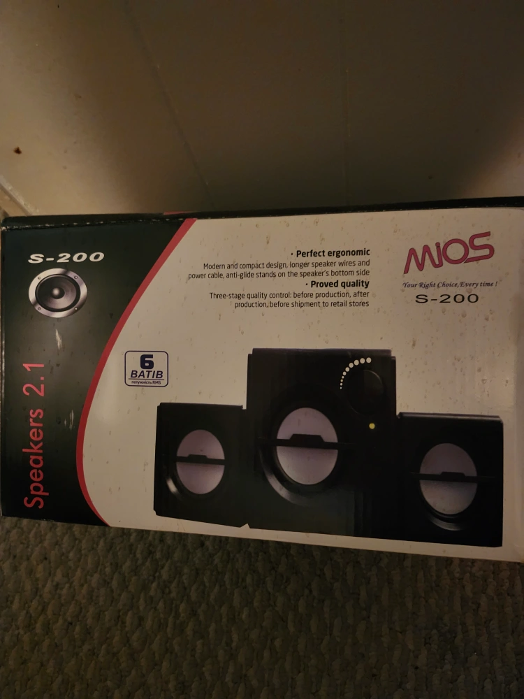 60Selling a MIOS S-200 Speakers 2.1 system! It features a subwoofer system with high-quality sound performance. This includes 4 magnetically shielded satellite speakers providing real surround sound. The amplified subwoofer adds a dynamic bass reflex system for 3D surround sound. The speaker unit includes a satellite: 2.25" x 2 and a woofer: 4". The frequency response is satellite: 150Hz - 18kHz and woofer: 20Hz - 200Hz. The output power is satellite: 2 x 3W (RMS) 4 Ohm and woofer: 10W (RMS) 4 Ohm. The A/C voltage is 110V/50Hz. It also comes in its original box!