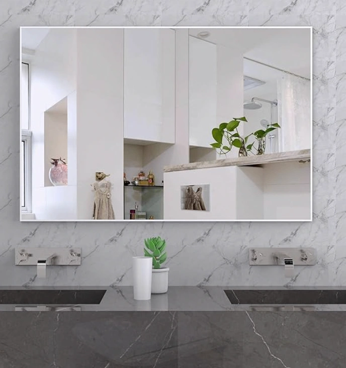 Mirror, 36x24 Inch, Rectangular, Aluminum Frame, White