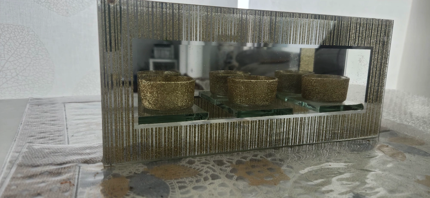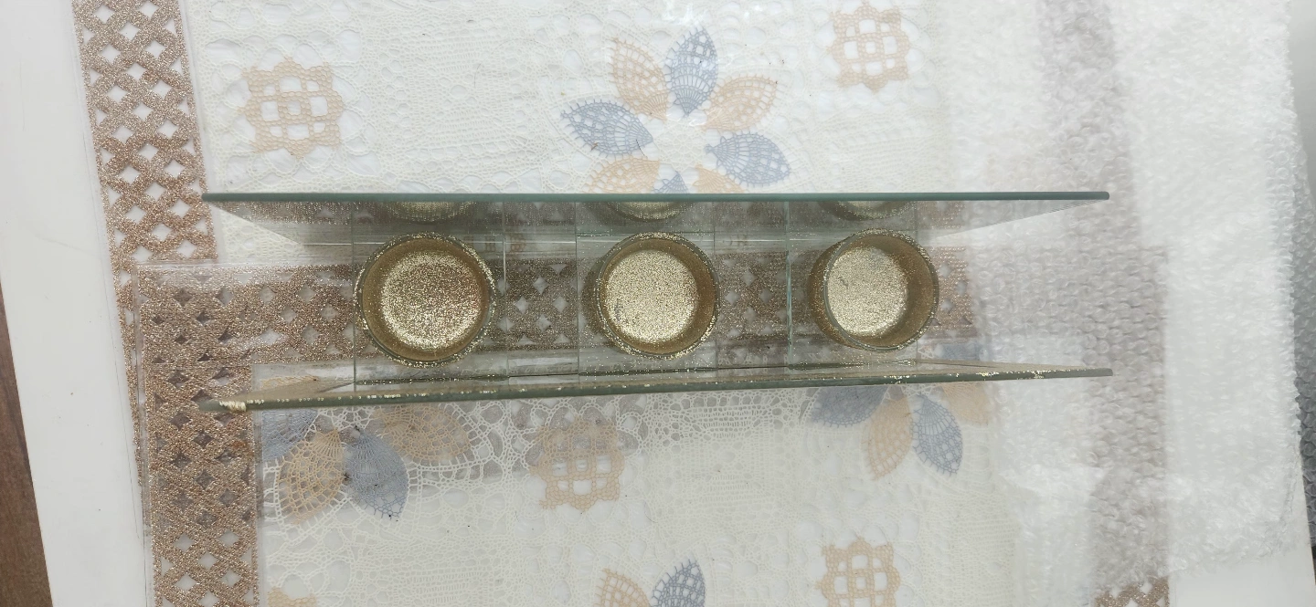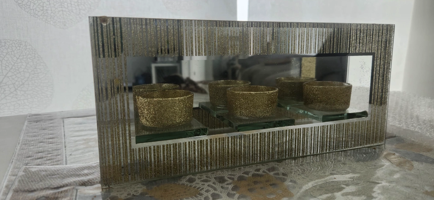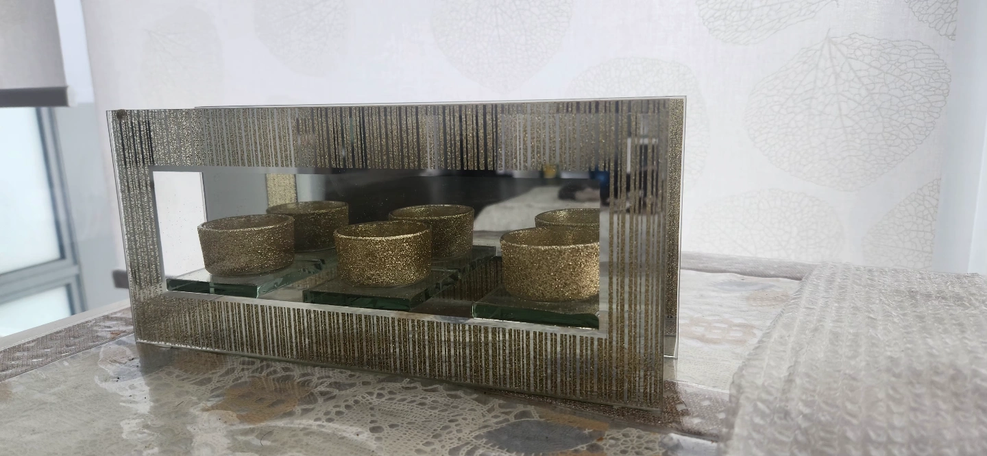 18Mirrored centre & Gold glitter detailing. Holds 3 tealights *Comes in original box